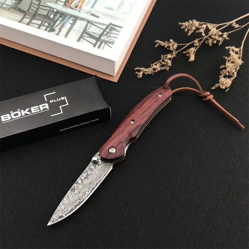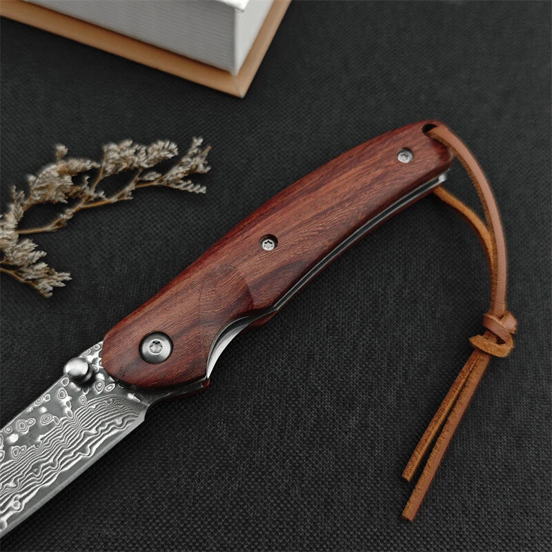 This Damascus steel folding knife is a must-have for outdoor adventures! The compact size makes it super portable, yet the razor-sharp blade handles tough tasks effortlessly. The beautiful steel pattern gives it a premium look, and the smooth folding mechanism feels sturdy and secure. Perfect for camping, hiking, or everyday carry—great quality at an amazing price!