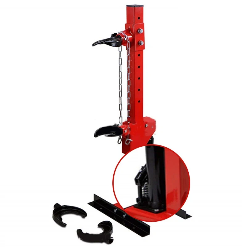 Damping Disassembly Machine Shock-Absorbing Spring Compressor Hydraulic Tools Item Description Nam e: shock absorbing spring dismantling machine Packing weight: 37KG Package size: 116*36*27CM Load capacity: 3T (6600 lb) Cylinder piston stroke: 320mm (12.6") Piston Diameter: 28mm (1.1") Minimum support rod shaft open: 65*51mm (2.6"*2") The maximum. Support rod shaft opening: 60*300mm (2.4"*11.8") Lifting height of jack: 495~820mm (19.5"*32.3") Height adjustment: It can be adjusted through 7 holes on the column Gross weight: 32 kg (70.5 lb)