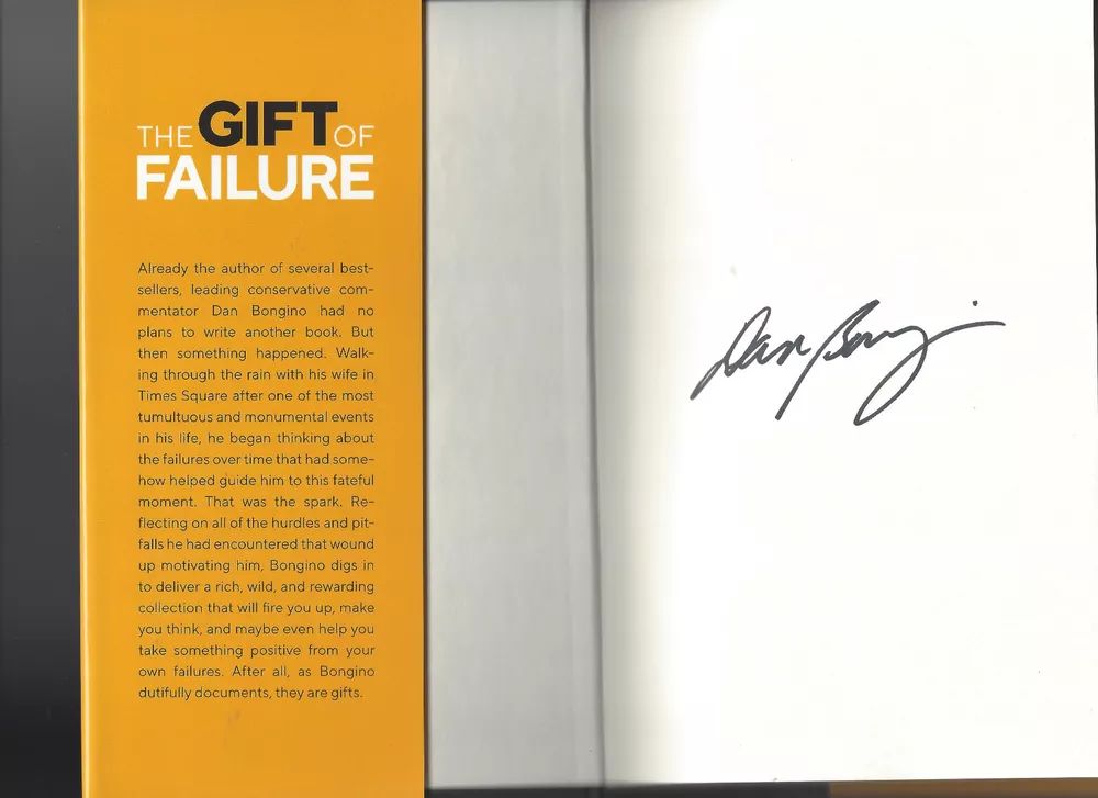 Dan Bongino *AUTOGRAPHED/SIGNED* The Gift of Failure Hard Cover w/ Dust jacket -BRAND NEW New unread publisher issue signed copy, not an "in person" signed edition. Guaranteed to pass any third party authentications service (PSA, JSA, Beckett, etc). winning bidder pays $4.75 economy shipping. Expedited shipping available upon request for an additional fee,