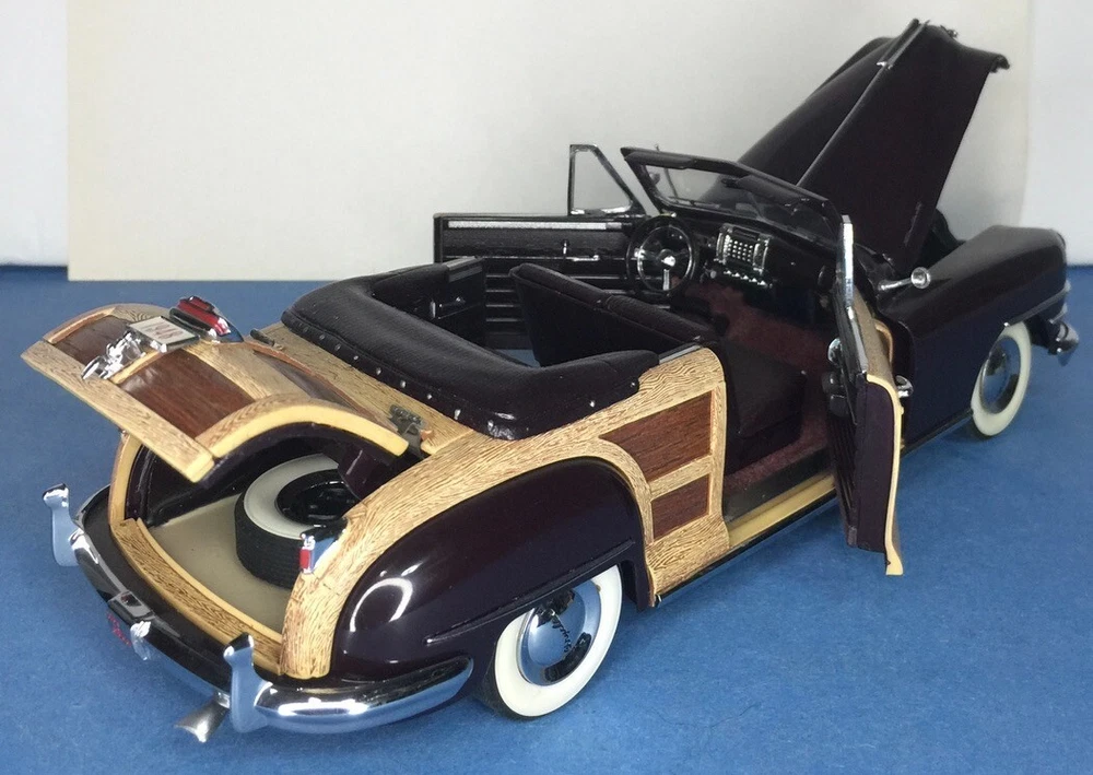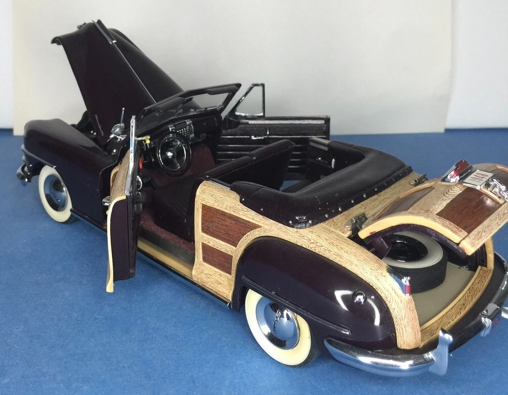This Danbury Mint 1948 Chrysler Town & Country Car 1:24 is a perfect addition to any diecast car collection. With its multi-color design and convertible car theme, it is sure to catch the eye of any enthusiast. Made from high-quality diecast material, this model is built to last and is recommended for ages 14 and up. The vehicle is modeled after a 1948 Chrysler Town & Country car and is part of the 1994 Danbury Mint series. It was manufactured in China and is suitable for both boys and girls aged 17 years and up. This model is a great gift for any car enthusiast, and it is sure to be a prized possession for years to come.