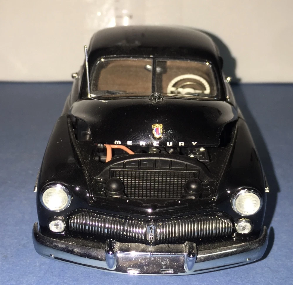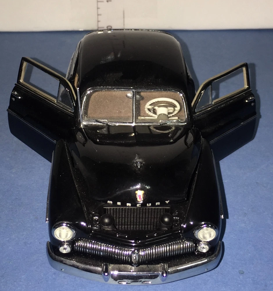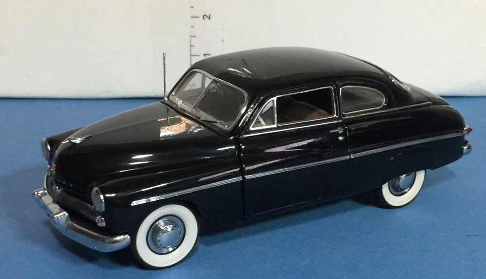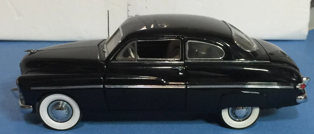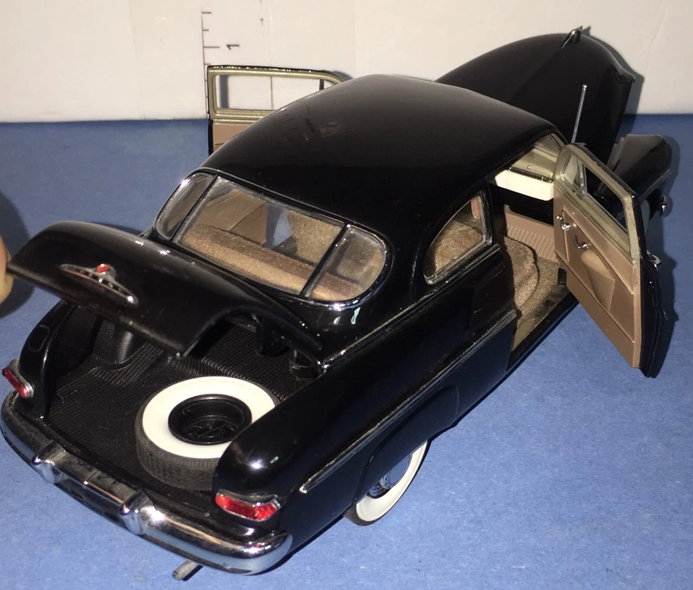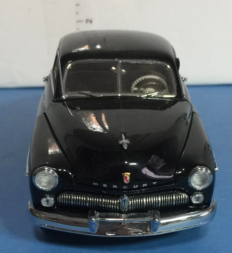 The Danbury Mint 1949 Mercury Club Coupe Diecast in 1:24 scale is a model replica of a classic black car from 1949. This collectible piece was manufactured in 1993 and is made of diecast material. Part of the Classic Cars series by Danbury Mint, this model is a detailed representation of the vintage Mercury Club Coupe, perfect for car enthusiasts and collectors alike.