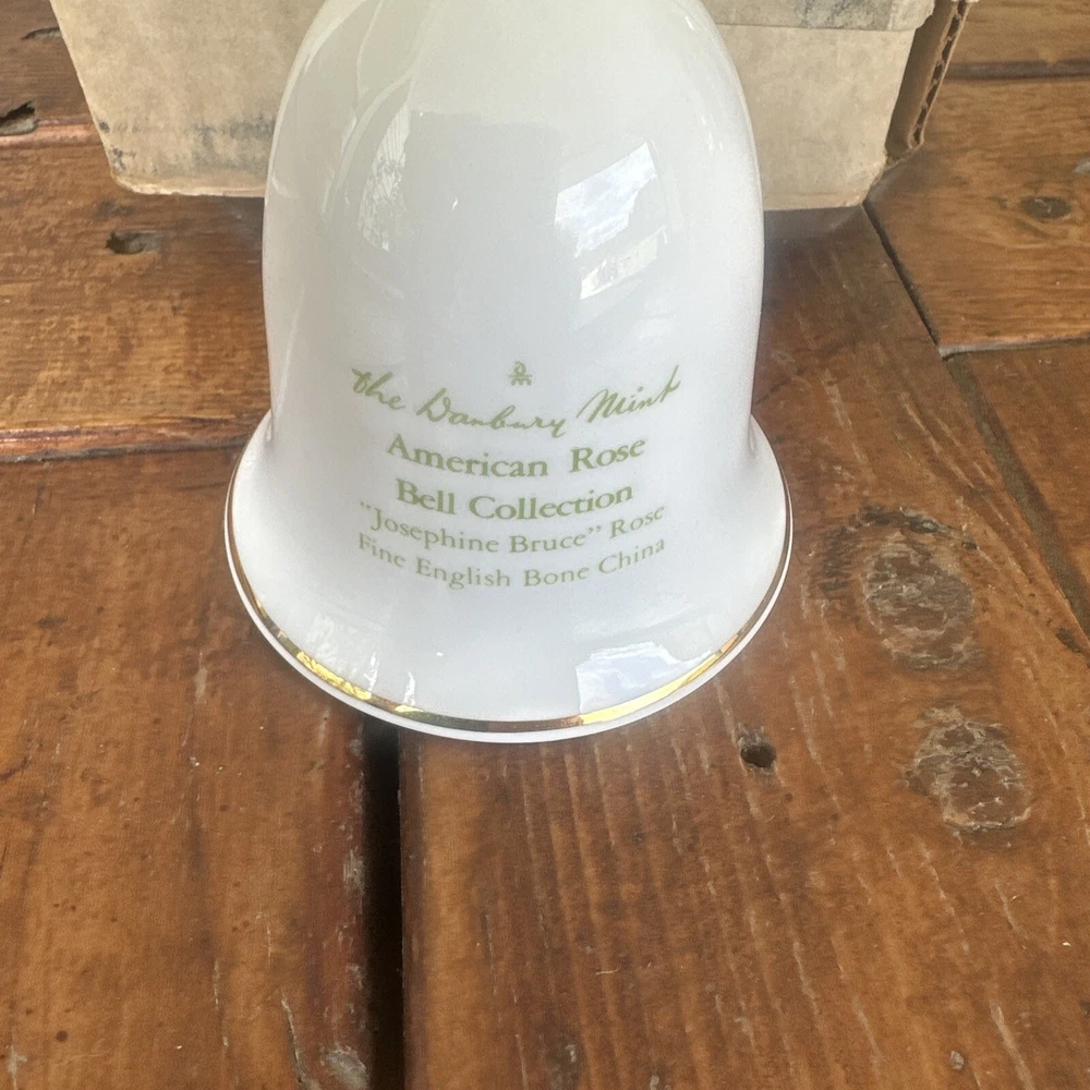 This beautiful Danbury Mint bell features the Josephine Bruce Rose pattern, with delicate pink, white, and gold colors. It is perfect for collectors of all occasions, and its American style adds a touch of elegance to any decor. Made of high-quality porcelain and crafted in the United Kingdom, this bell is a must-have for any decorative collectibles enthusiast. This is in original box does not have paper with it.