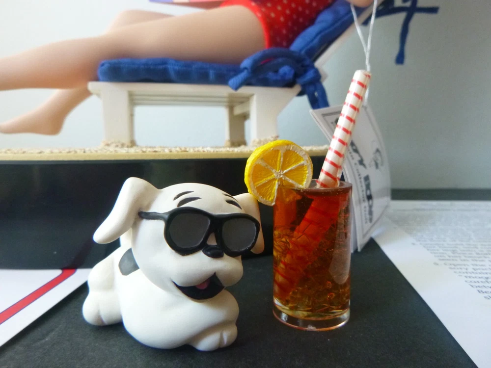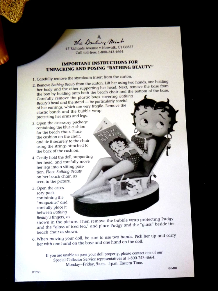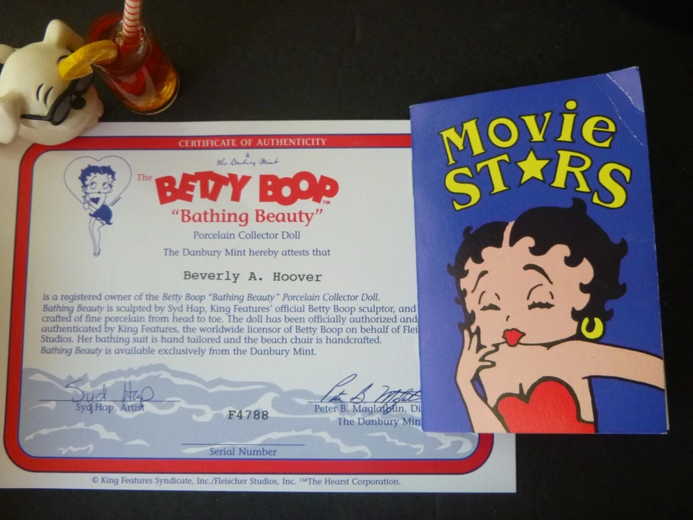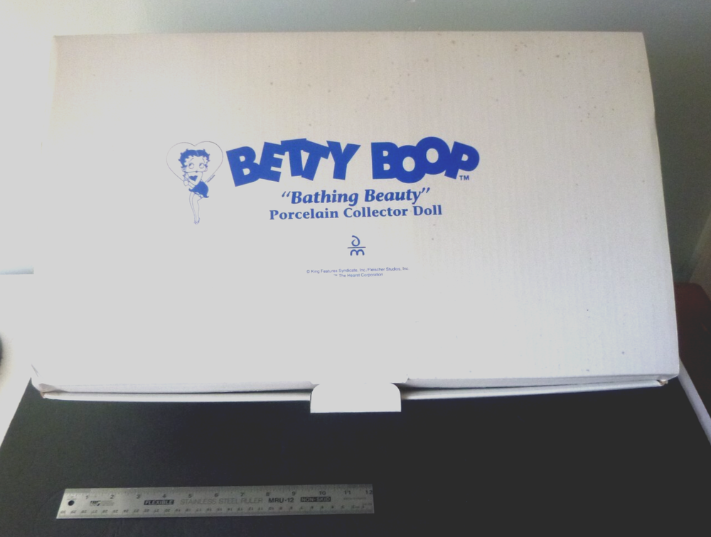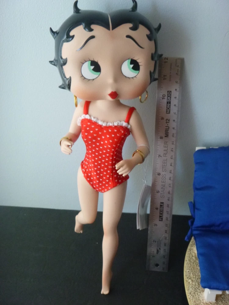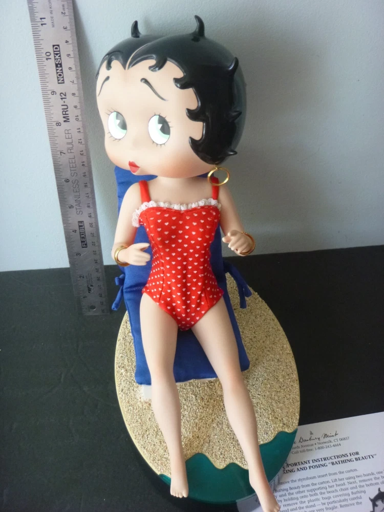 Wonderful Betty Boop large 14" doll all set up for the beach. Excellent condition. The only item worth mentioning is a fold crease at the top of Boop magazine. Comes with all accessories. Chair, chair pad, frosty drink, and Pudgy with sunglasses. (Chair is attached to the beach scene.) She has her hang tag, COA and paper describing how to set up the doll scene. Comes in an oversized original box so sorry about ship costs. Local pick-up is free near Quakertown, PA. Non-smoking home.