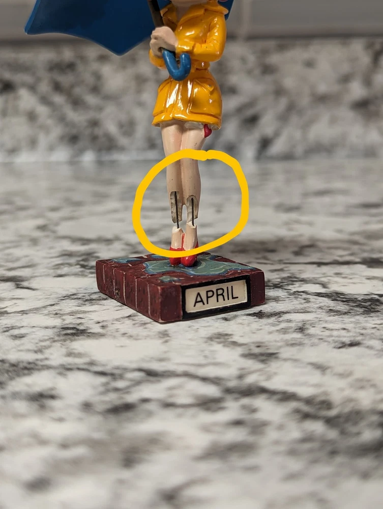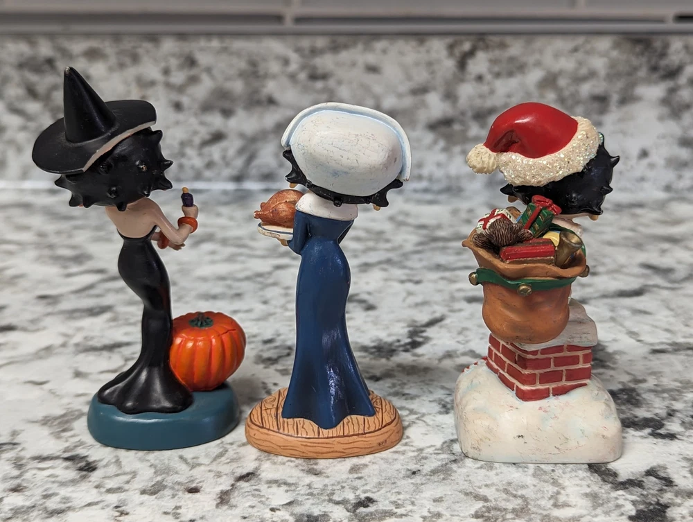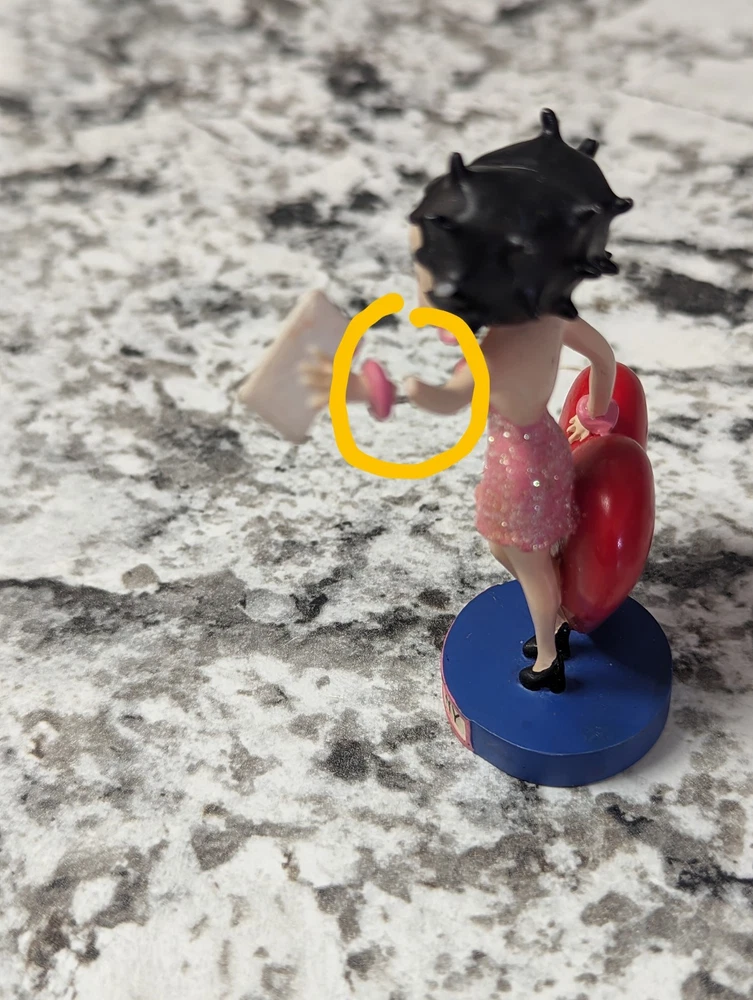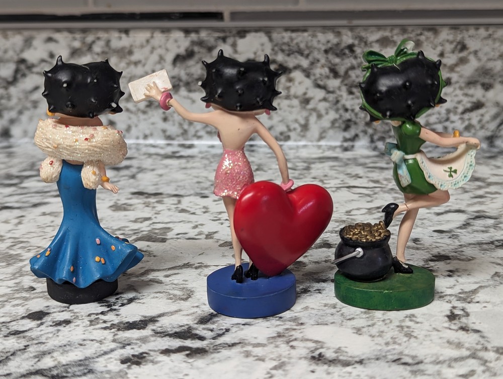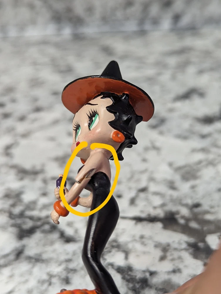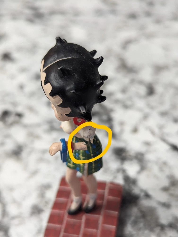The Danbury Mint Betty Boop Calendar Mth Figurine Booping Through The Years 12. Out of the 12 figures 5 of the months have some slight damage to them. The months of February, March, April, September, and October are the ones with damage, can see in the pictures. The rest of the figurine months are in good condition.