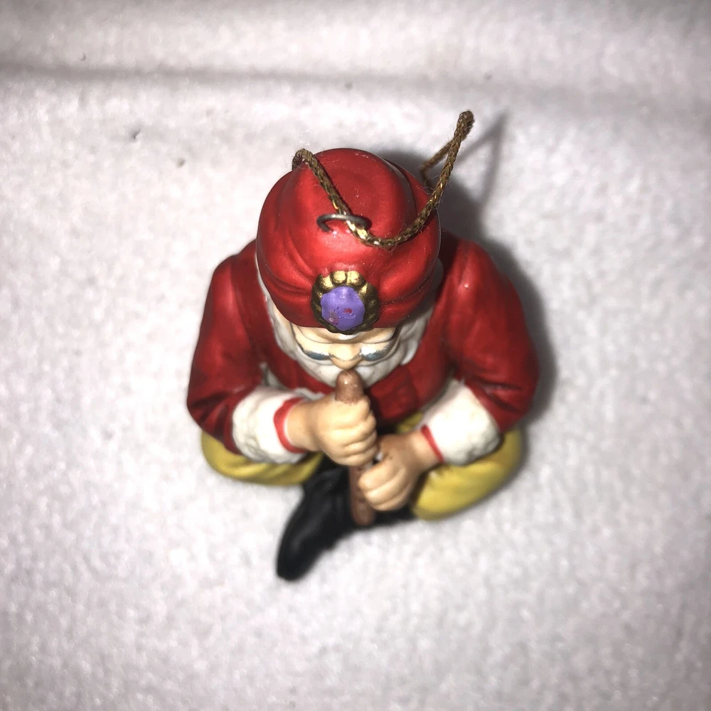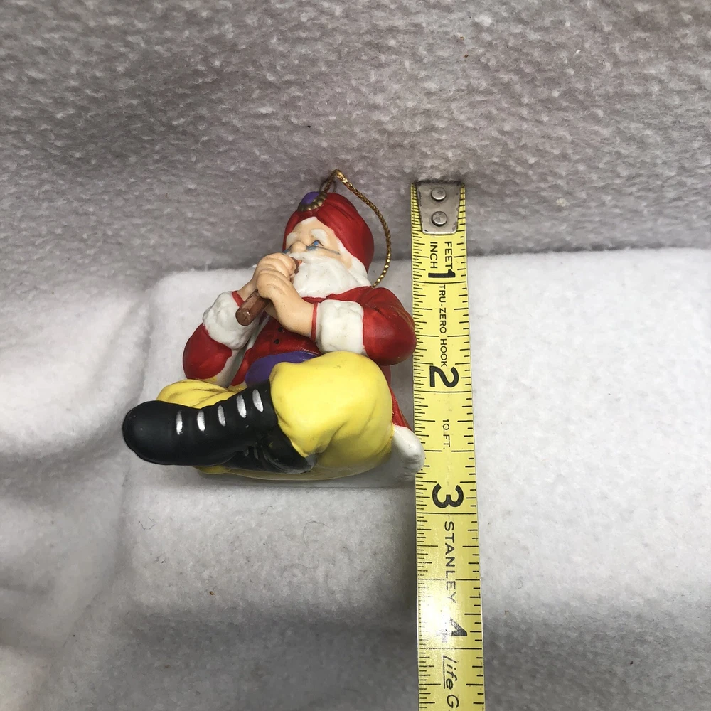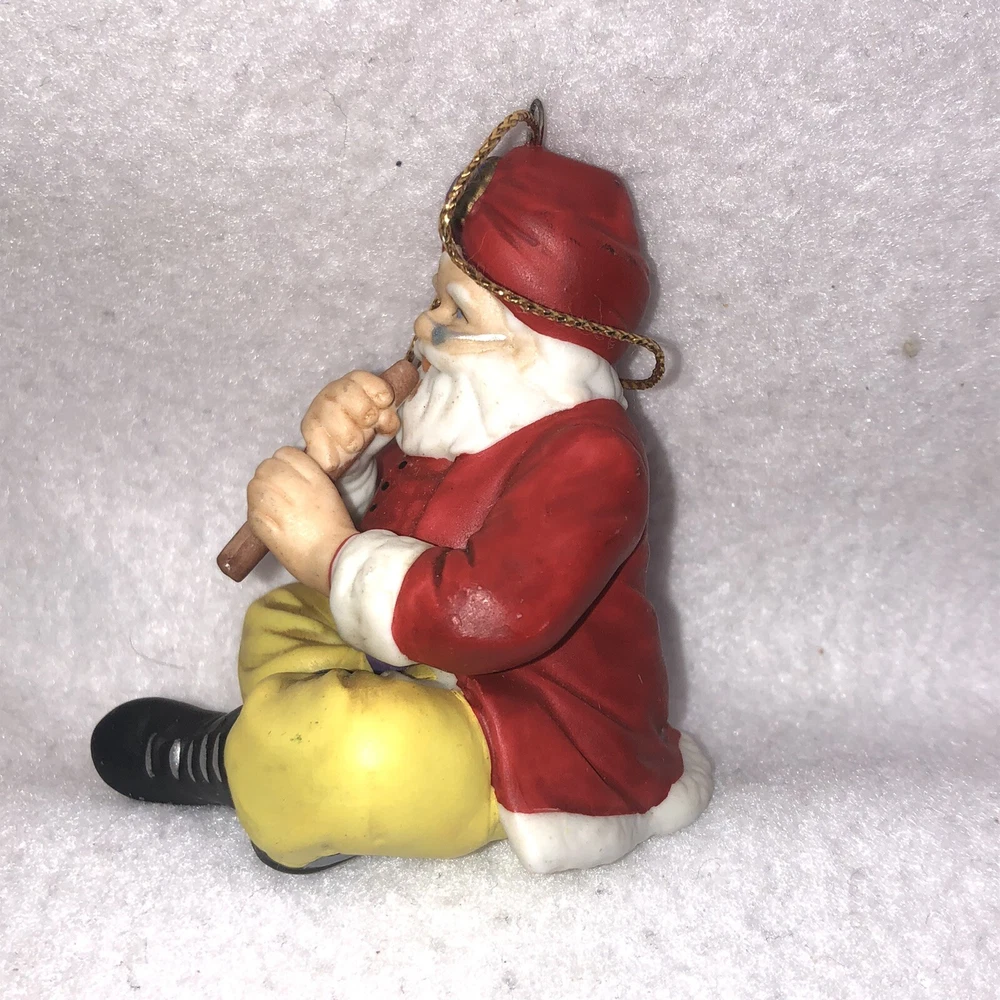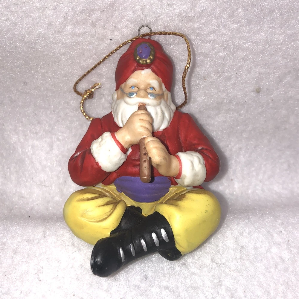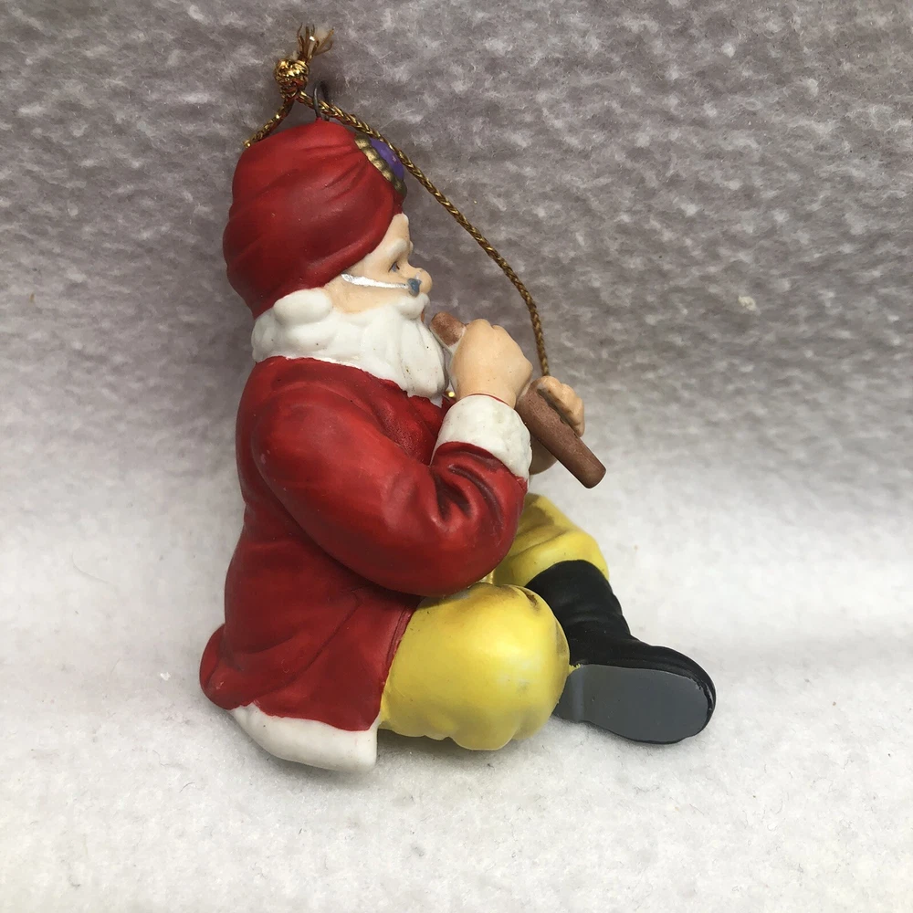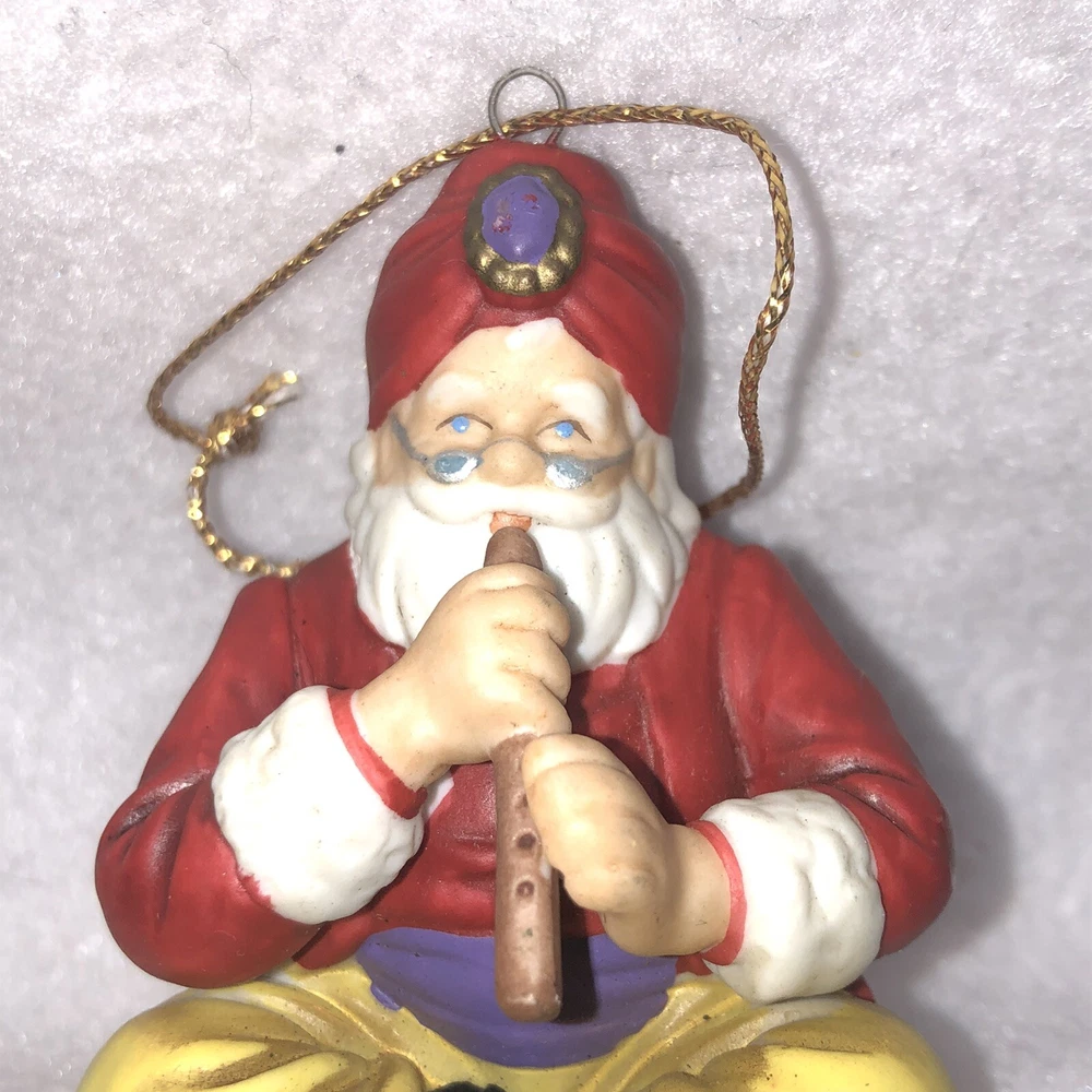 This is a fun Santa from the Danbury Mint's Santa Around the World series. Produced in the early 2000's, this line is now discontinued. This particular Santa is #19 in the series and it represents India. Santa is dressed in his handsome jewel trimmed turban and appears to be playing the flute. He measures approximately 2 1/2 inches tall, 2 inches long and is about 2 1/2 inches wide. Ornament is in good pre-owned condition. There are no nicks, chips, cracks or repairs. Light surface wear does exist. Original Danbury Mint hallmark sticker can be found on the bottom. He no longer comes with a box. Please review and enlarge all photos for additional details, views and measurements. Shipped via USPS Ground Advantage.