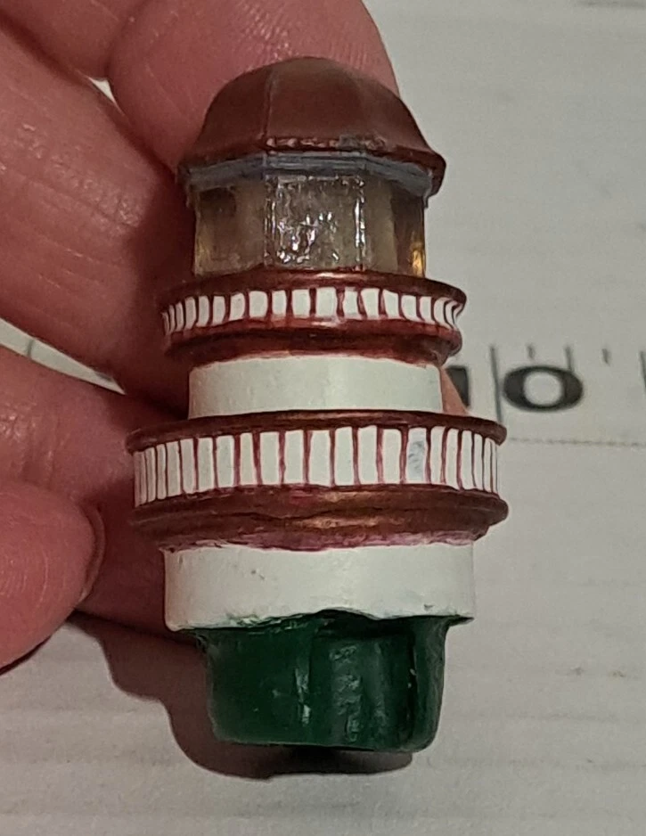 Christmas Tree Topper Light House Danbury Mint Lighthouse Replacement Piece Part ONLY See photos for measurements Opening on bottom for Danbury Mint Tree Light to slide into. I consider to be in very good condition Paint smudge/scufs possible Please view all photos zooming in on them as they are part of the description for you to judge condition
