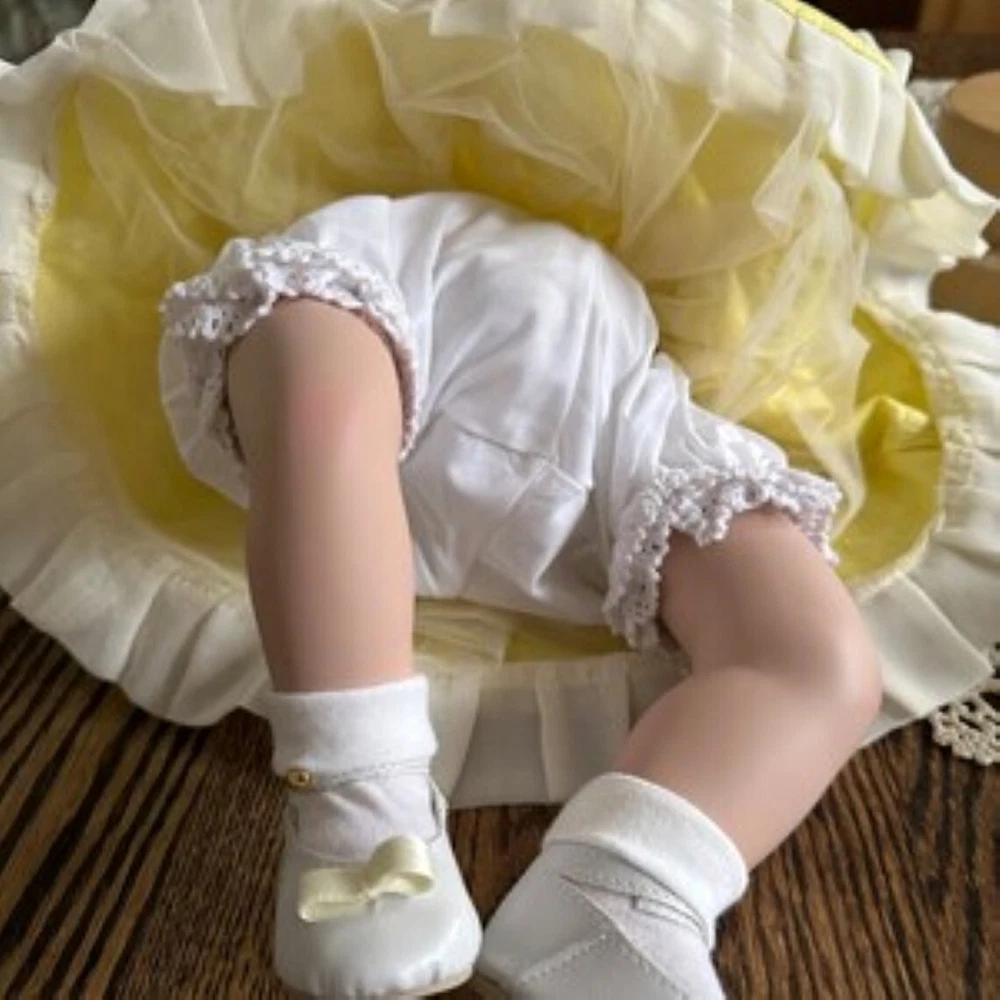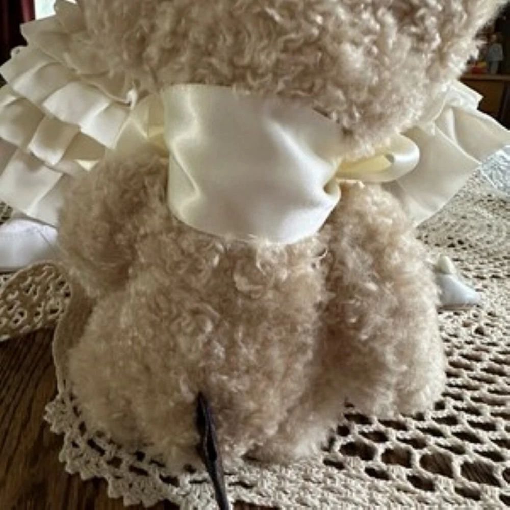 Danbury Mint Little Elizabeth Portrait Doll & Boyds Bear --Made in celebration of Queen Elizabeth's Diamond Jubilee (Includes original doll box and COA.) This exquisite doll is made with high-quality porcelain and fabrics. Her "Lilibet" face is so charming it will steal your heart away. The sheer ruffle-layered frock is so sweet in soft yellow, tied in the back in a lovely bow. She loves to hold her cuddly teddy bear, another high-quality product (an original, jointed Boyd's Bear collectible). She is approx. 18" long and sits about 12" high. Her face, breast plate, arms, and legs are made of the finest porcelain and painted with realistic detail. Her body is stuffed cotton, weighted to sit in an adorable toddler position. Underneath she is wearing crisp-white ruffled bloomers and the sweetest shoes (with coordinating yellow bows) and anklets. Her hair is styled in the sweetest baby waves and her baby-blue, glass eyes have the most adorable expression. She will be carefully packed (and tucked in) to travel safely from my clean, smoke-free, pet-free home to yours. Thank you for your interest! Happy to answer any questions.