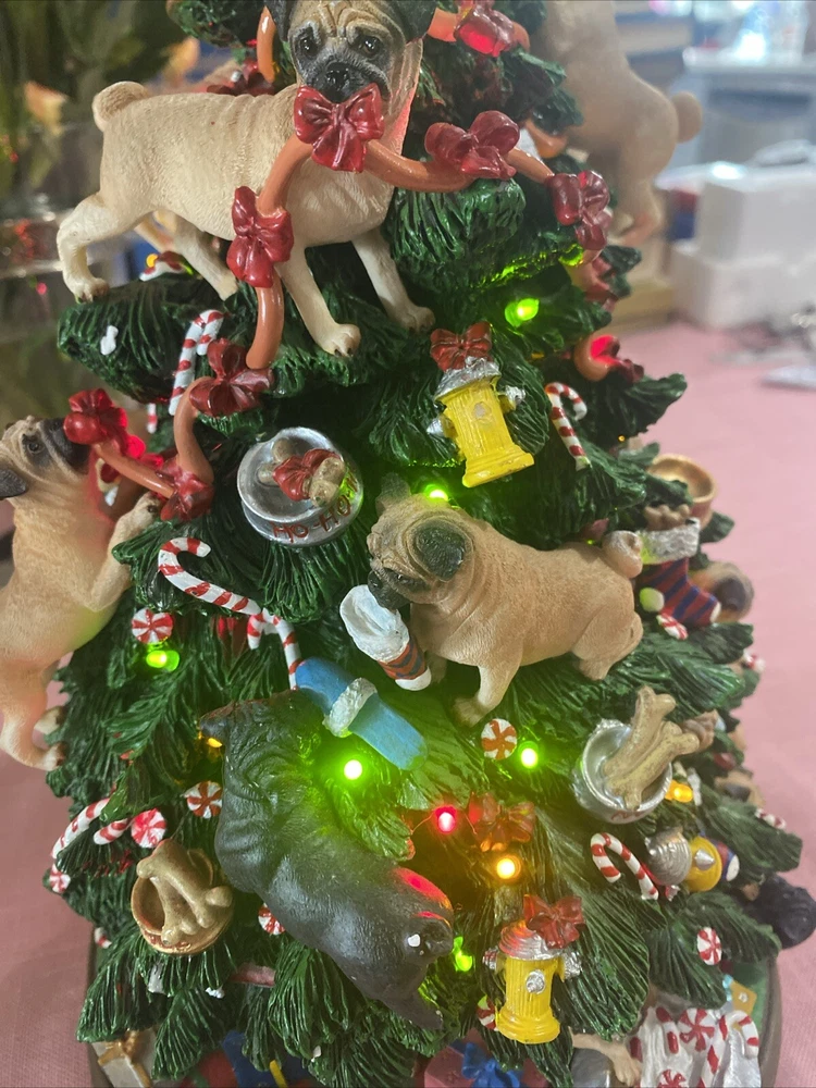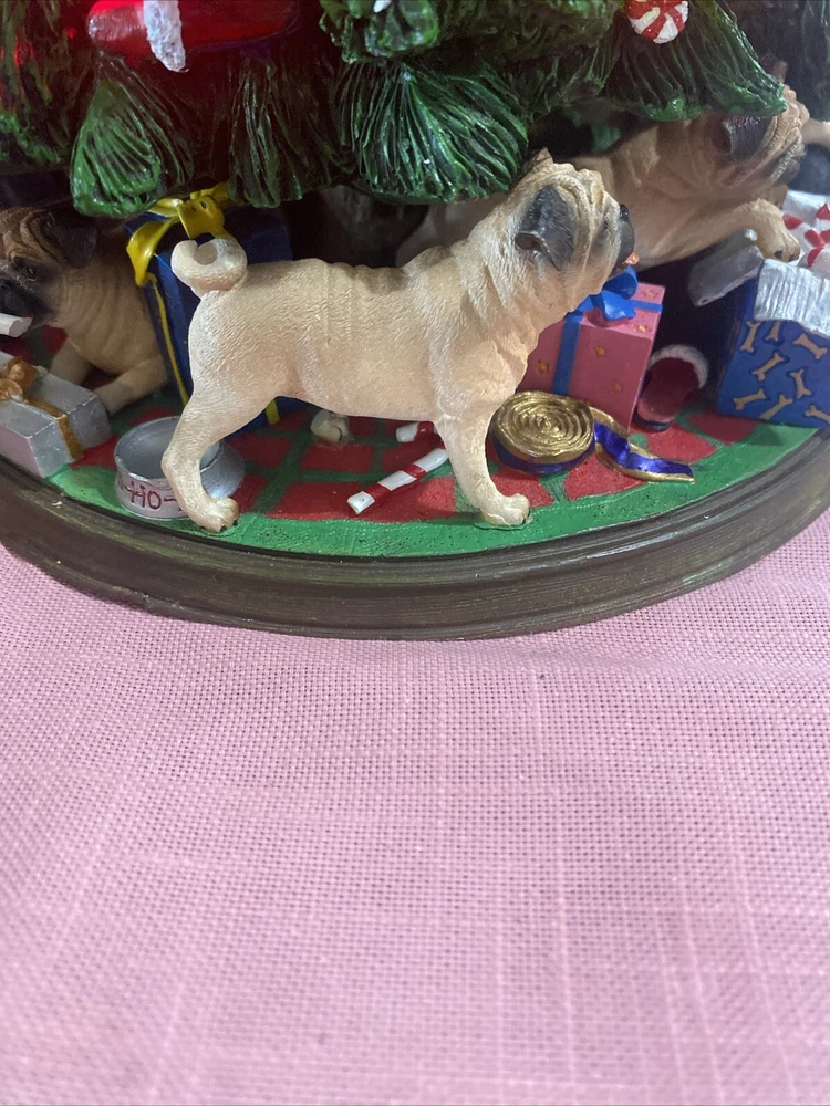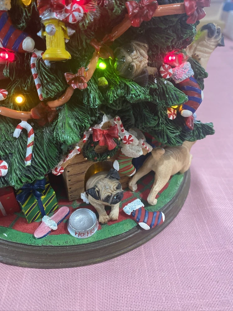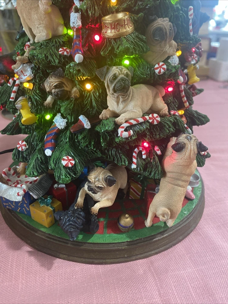 Please look at pictures pug is missing on bottom & needs gluing back but not visible and one pug has a slight chip. Please ask questions before purchasing! This Danbury Mint Pug Lighted Christmas Tree is a charming addition to your holiday decor. The mixed materials and multi-color design give it an American style that is both original and delightful. This collectible piece comes in its original box, measuring 12 inches and is perfect for any lover of decorative collectibles. The tree is in excellent working order and has not been modified from its original design. Add this lovely piece to your collection today!