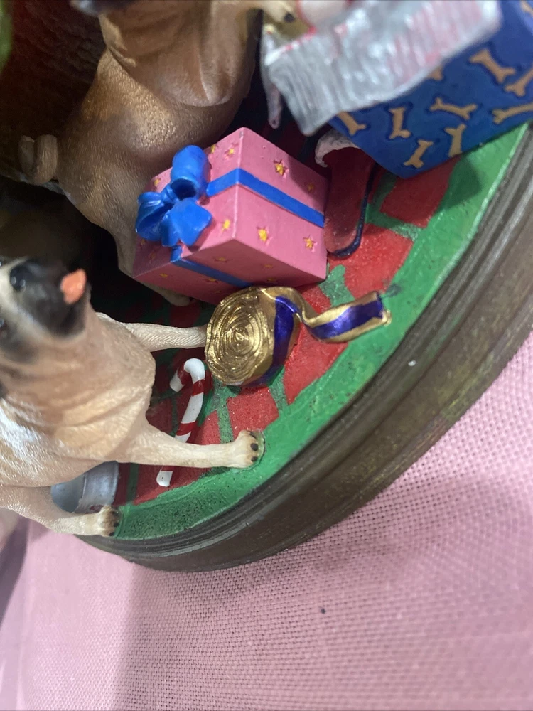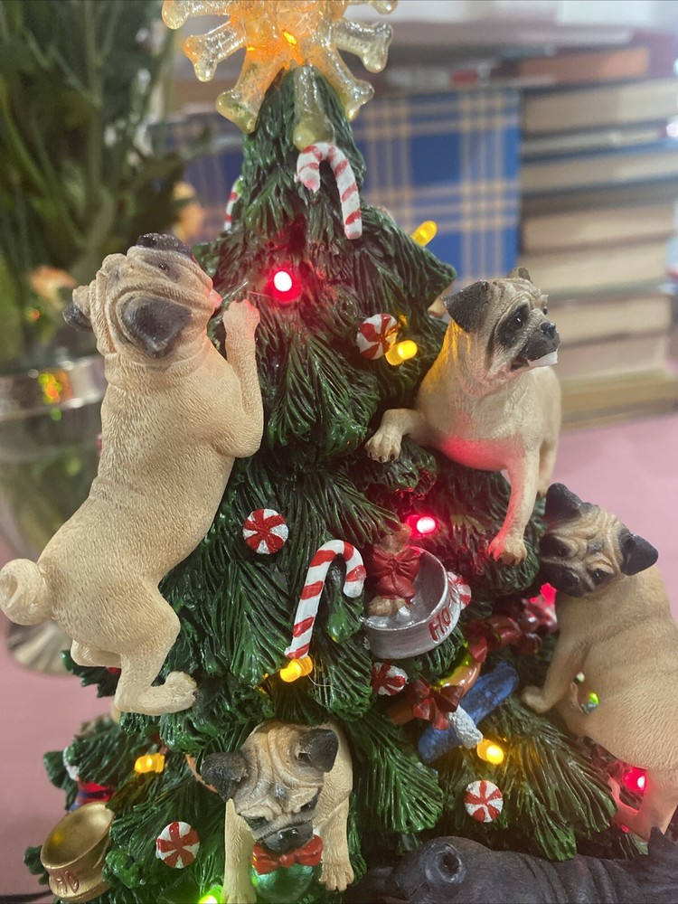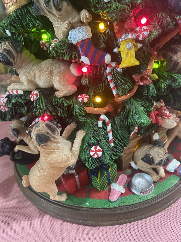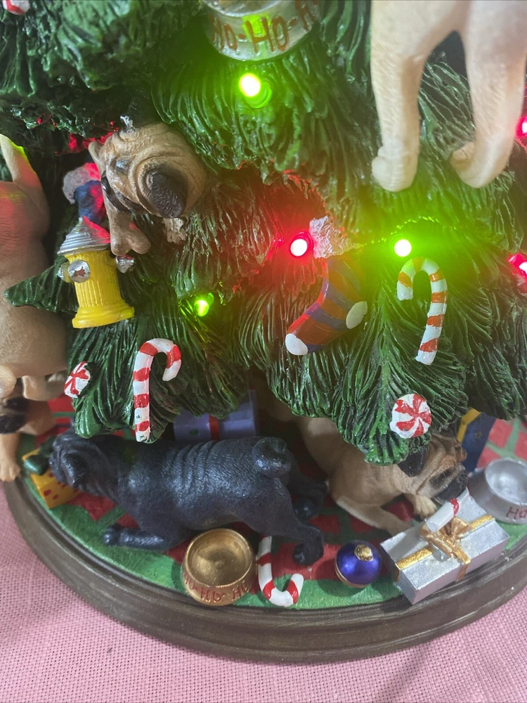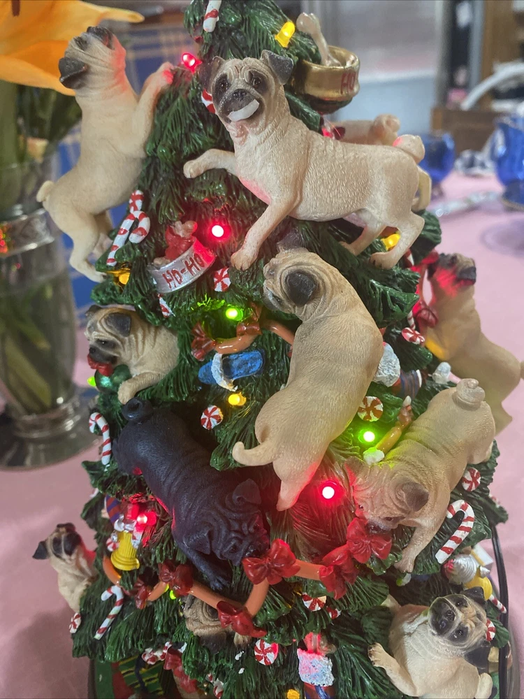 Please look at pictures pug is missing on bottom & needs gluing back but not visible and one pug has a slight chip. Please ask questions before purchasing! This Danbury Mint Pug Lighted Christmas Tree is a charming addition to your holiday decor. The mixed materials and multi-color design give it an American style that is both original and delightful. This collectible piece comes in its original box, measuring 12 inches and is perfect for any lover of decorative collectibles. The tree is in excellent working order and has not been modified from its original design. Add this lovely piece to your collection today!