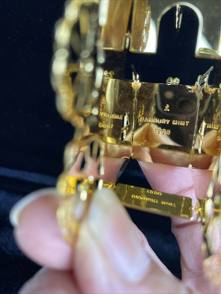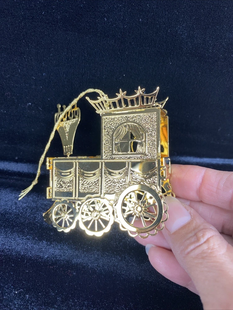 Gold Tone Christmas Train Hanging Ornament 1990 The Danbury Mint Collection Pre-Owned Review Photo For Details No Box