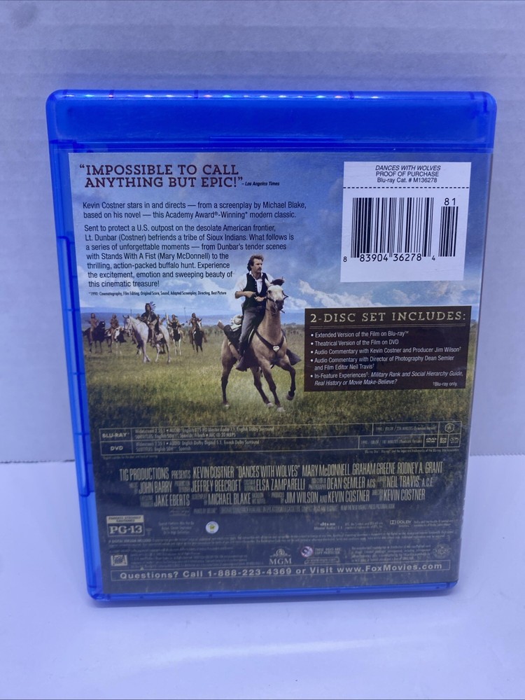 Dances with Wolves Blu-ray Kevin Costner Academy Award Winning Western Classic Film