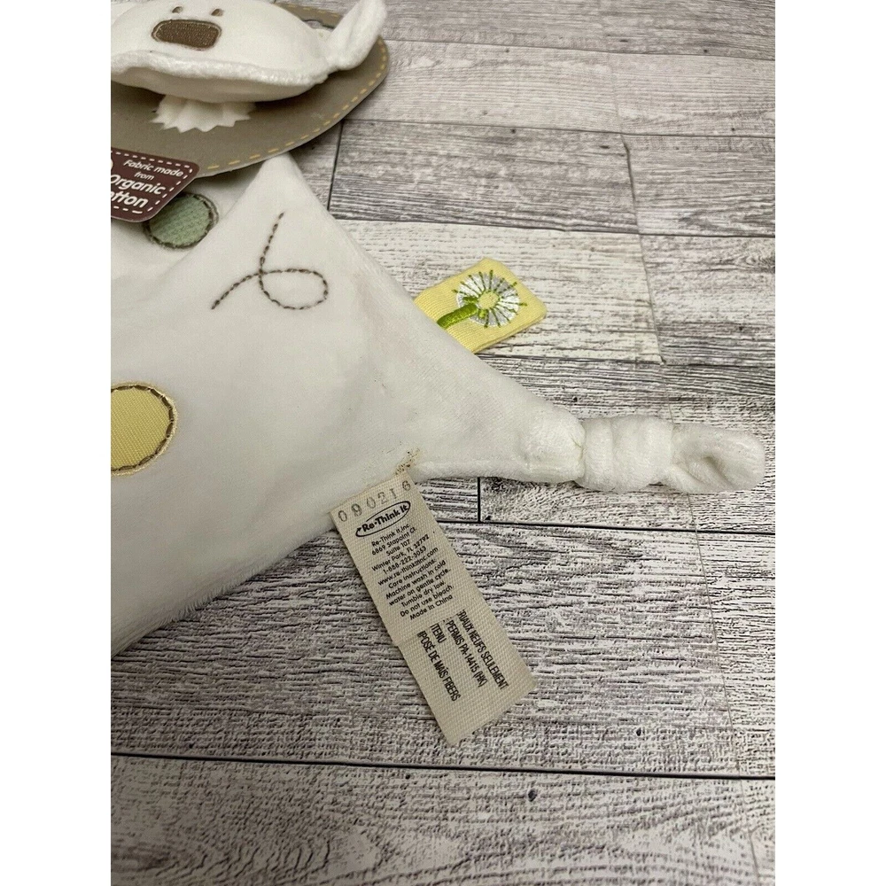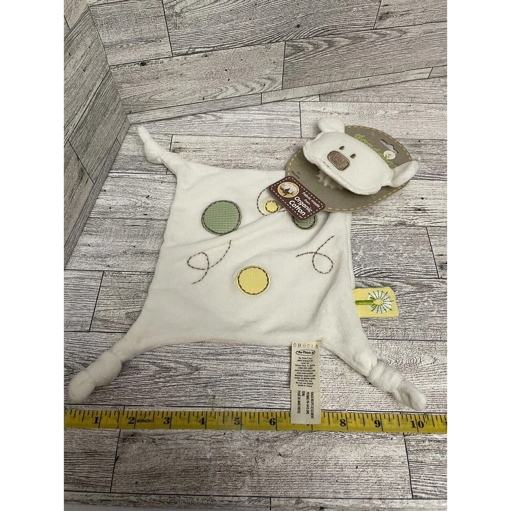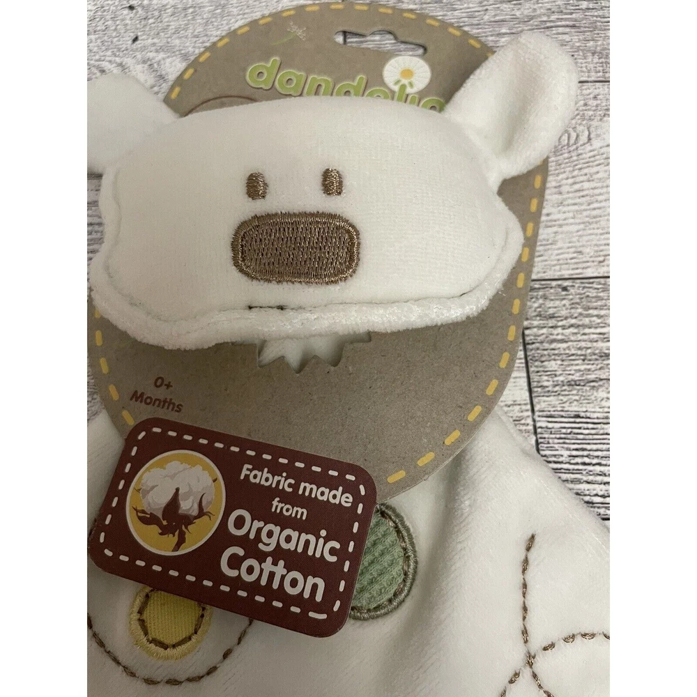 Introducing a charming baby security blanket from Dandelion. This lovey is made from soft and easy-to-care-for polyester material, featuring an adorable bear theme with embroidered details. The blanket measures 8 x 8 inches and comes in a cream color with yellow and green circle accents. This blanket is perfect for snuggling and comes with knotted corners and knots for little hands to grab onto. It also has a crinkle feature that provides sensory stimulation for babies. Ideal for both boys and girls, this lovey is suitable for newborns and older babies. Use it as a gift or keep it for your own little one! New with Tags Condition (please see pictures for more details) Comes from a smoke free, dog friendly home