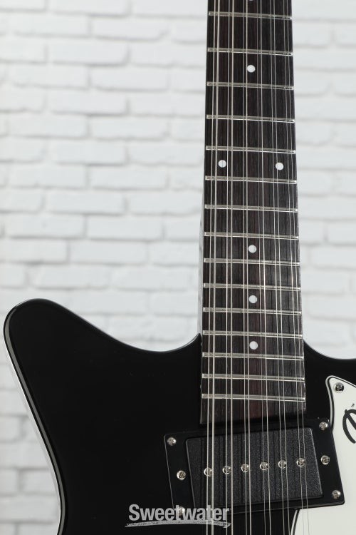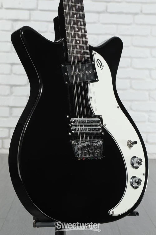 12-string Hardtail with Split H/S Pickups The Danelectro 59X12 — 12-string version of the groundbreaking 59XT — serves up a fragrant 12-string bouquet and a hearty spoonful of that classic Dano Shorthorn style. The 59X12’s neck P-90 and coil-split lipstick humbucker are your ticket to a world of folksy cleans and jangly pop nostalgia, with a broad palette of blitzed-out rock and psychedelic textures just waiting to be discovered. The 59X12’s resonant hardwood body and snappy maple neck operate in perfect harmony, with a pau ferro fingerboard adding to the guitar’s overall richness and sustain. A hardtail bridge (adjustable) gives this affordable 12-string rock-solid intonation and sustain. Rounding out this stylish semi-hollow is a set of die-cast chrome knobs and complementary chrome hardware. Dano Shorthorn style The iconic Shorthorn design makes a triumphant return in the Danelectro 59X12 12-string electric guitar. Tapping the hardwood/plywood semi-hollow body reveals a rich resonance, Sweetwater is an Authorized Danelectro Dealer Genuine Open Box Item Sweetwater's 2-year warranty and 55 point inspection Danelectro 59X12 12-string Electric Guitar - Black 12-string Semi-hollowbody Electric Guitar with Spruce Body, Hardboard Top and Back, Maple Neck, Pau Ferro Fingerboard, 1 Single-coil Pickup, and 1 Humbucking Pickup - Black 12-string Hardtail with Split H/S Pickups The Danelectro 59X12 — 12-string version of the groundbreaking 59XT — serves up a fragrant 12-string bouquet and a hearty spoonful of that classic Dano Shorthorn style. The 59X12’s neck P-90 and coil-split lipstick humbucker are your ticket to a world of folksy cleans and jangly pop nostalgia, with a broad palette of blitzed-out rock and psychedelic textures just waiting to be discovered. The 59X12’s resonant hardwood body and snappy maple neck operate in perfect harmony, with a pau ferro fingerboard adding to the guitar’s overall richness and sustain. A hardtail bridge (adjustable) gives this affordable 12-string rock-solid intonation and sustain. Rounding out this stylish semi-hollow is a set of die-cast chrome knobs and complementary chrome hardware. Dano Shorthorn style The iconic Shorthorn design makes a triumphant return in the Danelectro 59X12 12-string electric guitar. Tapping the hardwood/plywood semi-hollow body reveals a rich resonance, unplugged or onstage, which is why you could see earlier iterations of this guitar in the hands of notable axemen Syd Barrett and Jimmy Page. Versatile H/S pickups The 59X12 ain’t your grandaddy’s Dano. This retro reimagining of the classic 59 is a thoroughbred rock stallion, with a snarling P-90 in the neck position and a full-range lipstick humbucker at the bridge. The angled pickup design is effective at balancing notes across all 12 strings, giving bridge-position high octaves a bit more warmth and neck-position low octaves a touch more clarity. What surprised us at Sweetwater is how well the humbucker cleans up, especially in the split configuration. Engaging the push-pull coil-split unearths more of the iconic jangle and bite that 12-string Danelectros are best known for. Adjustable hardtail bridge Intonation is a critical part of the 12-string recipe. That’s why your 59X12 comes loaded with an adjustable hardtail bridge for rock-solid stability between octaves. Paired with its other assets, there’s no question: the Danelectro 59X12 12-string from Sweetwater is a lot of guitar for not a lot of dough. Danelectro 59X12 Features: A stylish semi-hollow 12-string with split H/S pickups Celebrated Dano design: Shorthorn body, Coke bottle headstock, lipstick pickup covers Taps into folksy cleans and classic pop jangle Opens up into blitzed-out rock and psychedelic tons Versatile onboard electronics P-90 single-coil neck pickup Lipstick humbucker bridge pickup with push-pull coil split Adjustable bridge allows for rock-solid intonation Specification Detail Number of Strings 12 Left-/Right-handed Right-handed Body Type Semi-hollowbody Body Shape 59X12 Body Material Spruce Top Material Hardboard Color Black Body Finish Gloss Polyester Neck Material Maple Neck Shape C Neck Joint Bolt-on Radius 14" Fingerboard Material Pau Ferro Fingerboard Inlay Dots Number of Frets 21 Scale Length 25" Nut Width 1.78" Nut Material Aluminum Bridge/Tailpiece Adjustable 12-string Tuners Die-cast Chrome Neck Pickup Vintage-style Single-coil Bridge Pickup Dual Lipstick Humbucker Controls 1 x master volume, 1 x master tone (push/pull bridge coil-split) Switching 3-way toggle pickup switch Strings D'Addario, .010-.046 Case/Gig Bag Sold Separately RETURN INFORMATION We want you to be completely happy with your purchase from Sweetwater. If you are not satisfied with your product, you may return it for a refund of the purchase price within 30 days. If your purchase was eligible for Free Shipping, the shipping cost will be deducted from your credit or refund. Returns must be in the complete and original packaging with all accessories and complete documentation (Owner's Manual, warranty card, quick start guides, etc.), show no signs of wear or use, and include a Return Authorization number or be subject to a restocking fee.