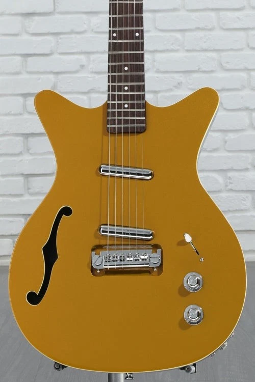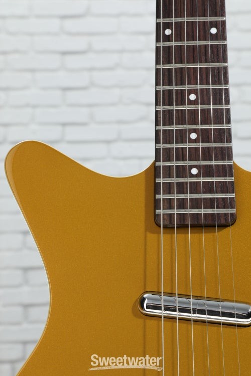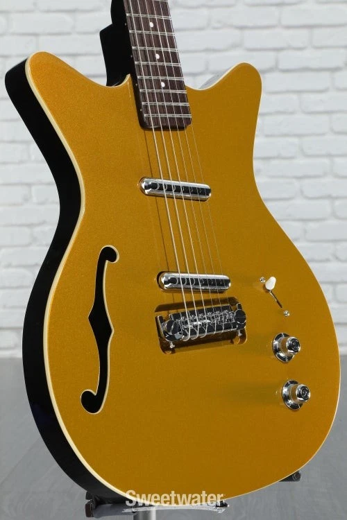 The Other Masterpiece Released in 1959 Jangle, gristle, snarl, and soul: the late-’50s Danelectro sound is unmistakable. With a double-cut Shorthorn body shape and vintage Lipstick pickups, the Danelectro Fifty Niner DC semi-hollowbody electric guitar oozes with early rock’ n’ roll attitude. The Fifty Niner DC’s lightweight hardboard/spruce body delivers the signature Dano sound — a lively, assertive warmth somewhere between a solidbody and a more traditional semi-hollowbody, complete with a center block for feedback suppression, so you can always pair the Fifty Niner DC with your favorite pedals and effects. You’ll love how the Fifty Niner’s lightweight build provides all-night comfort onstage without the delicate fragility of traditional semi-hollowbody electrics. The Fifty Niner DC’s maple neck and rosewood fingerboard keep playability agile and fluid, while the Shorthorn body shape provides excellent access to frets closest to the body. Unleash a wallet-friendly masterpiece and re-create authentic vintage tones with the Sweetwater is an Authorized Danelectro Dealer Genuine Open Box Item Sweetwater's 2-year warranty and 55 point inspection Danelectro Fifty Niner DC Semi-hollowbody Electric Guitar - Gold Top Semi-hollowbody Electric Guitar with Hardboard/Spruce Body, Maple Neck, Rosewood Fingerboard, and 2 Single-coil Pickups - Gold Top The Other Masterpiece Released in 1959 Jangle, gristle, snarl, and soul: the late-’50s Danelectro sound is unmistakable. With a double-cut Shorthorn body shape and vintage Lipstick pickups, the Danelectro Fifty Niner DC semi-hollowbody electric guitar oozes with early rock’ n’ roll attitude. The Fifty Niner DC’s lightweight hardboard/spruce body delivers the signature Dano sound — a lively, assertive warmth somewhere between a solidbody and a more traditional semi-hollowbody, complete with a center block for feedback suppression, so you can always pair the Fifty Niner DC with your favorite pedals and effects. You’ll love how the Fifty Niner’s lightweight build provides all-night comfort onstage without the delicate fragility of traditional semi-hollowbody electrics. The Fifty Niner DC’s maple neck and rosewood fingerboard keep playability agile and fluid, while the Shorthorn body shape provides excellent access to frets closest to the body. Unleash a wallet-friendly masterpiece and re-create authentic vintage tones with the Fifty Niner DC semi-hollowbody electric guitar from Sweetwater! A sealed semi-hollow deal It’s an ingenious semi-hollow build that’s stood the test of time: a spruce body frame capped with hardboard paired with a center block that eliminates feedback. Liable, rugged, and beyond versatile, no guitar body sounds quite like a Danelectro’s body! The Fifty Niner’s nuanced resonance and tonal range give this guitar a unique edge for everything from vintage rockabilly blues to modern indie faves. Plus, cream body binding and a chocolate back give the Fifty Niner DC veritable retro appeal to match. Riveting tone: more than just lip service The Fifty Niner DC is known for its jangly mix-cutting midrange, but the onboard Lipstick pickups can dole out a wide assortment of vintage-tinged tones. The bridge pickup is your go-to for jangle and leads with focused bass, punchy midrange, and treble that’s spicy or sweet (depending on tone knob settings). The neck Lipstick pickup provides enhanced low-frequency gristle that fills sonic space and comes to life when played clean or driven. Turning both pickups on reveals a unique aspect of Danelectro wiring — series wiring in the middle position. Compared to the parallel wiring found on most electric guitars, the Fifty Niner’s series-wired position produces an extra-beefy tone with roaring bass/midrange response and less treble. Faithful ’50s design Today, Danelectro ‘50s pickup specs read like diligent recitations of the originals. Inside, Alnico VI magnets uniquely wrapped with coil and tape make these pickups sound as authentic as they look. Outside, the chrome covers are made from 80/20 brass zinc, just like the tubes Danelectro bought from a cosmetics factory back in the day, a detail that proves the Fifty Niner is a fully worthy heir of a legendary sound. Premium playability Sweetwater guitarists found the Fifty Niner’s comfortable “C” profile maple neck and 25-inch fingerboard scale pack a stellar blend of playability and range, further enhanced by the ’59 shape’s dual body cutaways for giant leaps and stress-free solos. What’s more, pitch-perfect tone is always within reach; the Fifty Niner DC comes outfitted with a bone nut and adjustable saddles for reliable tuning and long-term performance. Danelectro: an iconic American brand Founded in 1947, Danelectro produced guitar amps throughout the 1940s before expanding into guitars in the ’50s. With their beloved quirky hollowbody designs, hardboard/plywood construction, and lipstick pickups, the iconic Danelectro designs are instantly recognizable. Among other innovations, Danelectro introduced the baritone guitar in 1956 and the electric sitar in 1967. From guitar gods Jimmy Page and Jeff Beck to Who bassist John Entwistle (check out the bass solo on “My Generation”), country superstar Glen Campbell, Tom Petty lead guitarist Mike Campbell, and the ever-eclectic Wilco guitarist and solo artist Nels Cline, Danos have become staples in the guitar and bass arsenals of top artists in all genres. Now Danelectro is back and better than ever: Sweetwater is proud to offer you this formidable lineup of iconic vintage-inspired instruments. Danelectro Fifty Niner DC Semi-Hollowbody Electric Guitar Features: Legendary semi-hollowbody guitar from a groundbreaking company Lightweight spruce body and hardwood top and back deliver signature midrange tone Maple neck with rosewood fingerboard offers wonderful playability and response Lipstick single-coil pickups bring vintage midrange punch and trebl
