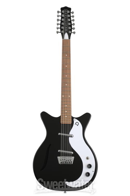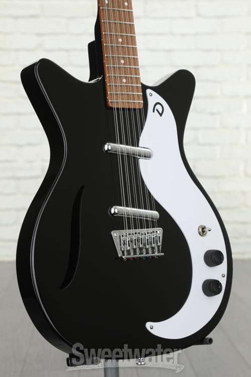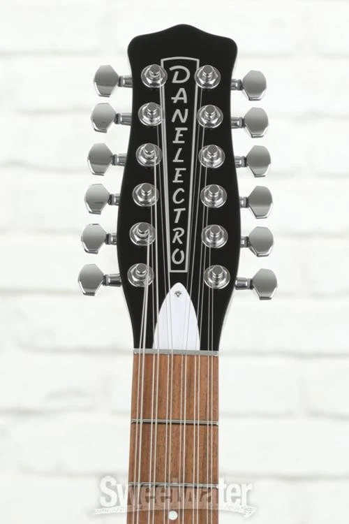 Classic Dano 12 String Sound and Feel Its iconic jangle is unmistakable. Sporting the classic Shorthorn hollowbody, “S” soundhole and a pair of ’56 Vintage Lipstick pickups, the Danelectro Vintage 12 String captures the look, feel, and tone of the early days of rock. The Vintage 12 String is constructed with a lightweight spruce and hardboard semi-hollowbody that delivers the jangly signature “Dano” sound. In addition, a maple neck with pau ferro fingerboard offers smooth playability, while a fully adjustable bridge lets you set your intonation to your liking. The Danelectro Vintage 12 String flawlessly re-creates the “Dano” sound heard on countless hit records. You simply must experience it for yourself.That signature jangle The two single-coil Lipstick pickups in the Vintage 12 String have a one-of-a-kind tone that captured the imagination of so many guitarists over the last six decades. With their coils wrapped around an Alnico VI magnet and Sweetwater is an Authorized Danelectro Dealer Genuine New Item Sweetwater's 2-year warranty and 55 point inspection Danelectro Vintage 12 String Electric Guitar - Black 12-string Semi-hollowbody Electric Guitar with Spruce Body, Hardboard Top and Back, Maple Neck, Pau Ferro Fingerboard, and 2 Single-coil Pickups - Black Classic Dano 12 String Sound and Feel Its iconic jangle is unmistakable. Sporting the classic Shorthorn hollowbody, “S” soundhole and a pair of ’56 Vintage Lipstick pickups, the Danelectro Vintage 12 String captures the look, feel, and tone of the early days of rock. The Vintage 12 String is constructed with a lightweight spruce and hardboard semi-hollowbody that delivers the jangly signature “Dano” sound. In addition, a maple neck with pau ferro fingerboard offers smooth playability, while a fully adjustable bridge lets you set your intonation to your liking. The Danelectro Vintage 12 String flawlessly re-creates the “Dano” sound heard on countless hit records. You simply must experience it for yourself. That signature jangle The two single-coil Lipstick pickups in the Vintage 12 String have a one-of-a-kind tone that captured the imagination of so many guitarists over the last six decades. With their coils wrapped around an Alnico VI magnet and then wrapped in tape, these pickups harken back to the vintage tone of rock’s earliest days. The result is a sound that truly stands alone — jangly, with a punchy midrange and a treble kick. And with a 3-way pickup selector plus volume and tone controls for each pickup, you’ll have a lot of options for dialing in your ideal tone for any track. An iconic American brand Founded in 1947, Danelectro produced guitar amps throughout the 1940s before expanding into guitars in the ’50s. With their beloved quirky hollowbody designs, hardboard/plywood construction, and Lipstick pickups, the iconic Danelectro designs are instantly recognizable. Among other innovations, Danelectro introduced the baritone guitar in 1956 and the electric sitar in 1967. From guitar gods Jimmy Page and Jeff Beck to Who bassist John Entwhistle (check out the bass solo on “My Generation”) to country superstar Glen Campbell, Tom Petty lead guitarist Mike Campbell, and the ever-eclectic Wilco guitarist and solo artist Nels Cline, Danos have become staples in the guitar and bass arsenals of top artists in all genres. Now Danelectro is back again and better than ever; Sweetwater is proud to offer you this formidable lineup of iconic vintage-inspired instruments. Danelectro Vintage 12 String Features: Classic Shorthorn hollowbody with “S” soundhole Spruce/Hardboard body; gloss polyester finish Bolt-on maple neck, C profile; gloss polyester finish Pau ferro fingerboard, 14-inch radius, dot inlays 25-inch scale length; 21 frets 2 passive single-coil Lipstick pickups 3-Way pickup selector Master Volume and Tone controls Adjustable 12-string bridge 1.78-inch Aluminum nut Die-cast tuners Dual-Action truss rod Specification Detail Number of Strings 12 Left-/Right-handed Right-handed Body Type Semi-hollowbody Body Shape Vintage Doublecut Body Material Spruce Top Material Hardboard Color Black Body Finish Gloss Polyester Neck Material Maple Neck Shape C Neck Joint Bolt-on Radius 14" Fingerboard Material Pau Ferro Fingerboard Inlay Dots Number of Frets 21 Scale Length 25" Nut Width 1.78" Nut Material Aluminum Bridge/Tailpiece Adjustable 12-string Tuners Die-cast Chrome Neck Pickup Lipstick Single-coil Bridge Pickup Lipstick Single-coil Controls 1 x master volume, 1 x master tone Switching 3-way toggle pickup switch Strings D'Addario, .010-.046 Case/Gig Bag Sold Separately RETURN INFORMATION We want you to be completely happy with your purchase from Sweetwater. If you are not satisfied with your product, you may return it for a refund of the purchase price within 30 days. If your purchase was eligible for Free Shipping, the shipping cost will be deducted from your credit or refund. Returns must be in the complete and original packaging with all accessories and complete documentation (Owner's Manual, warranty card, quick start guides, etc.), show no signs of wear or use, and include a Return Authorization number or be subject to a restocking fee.