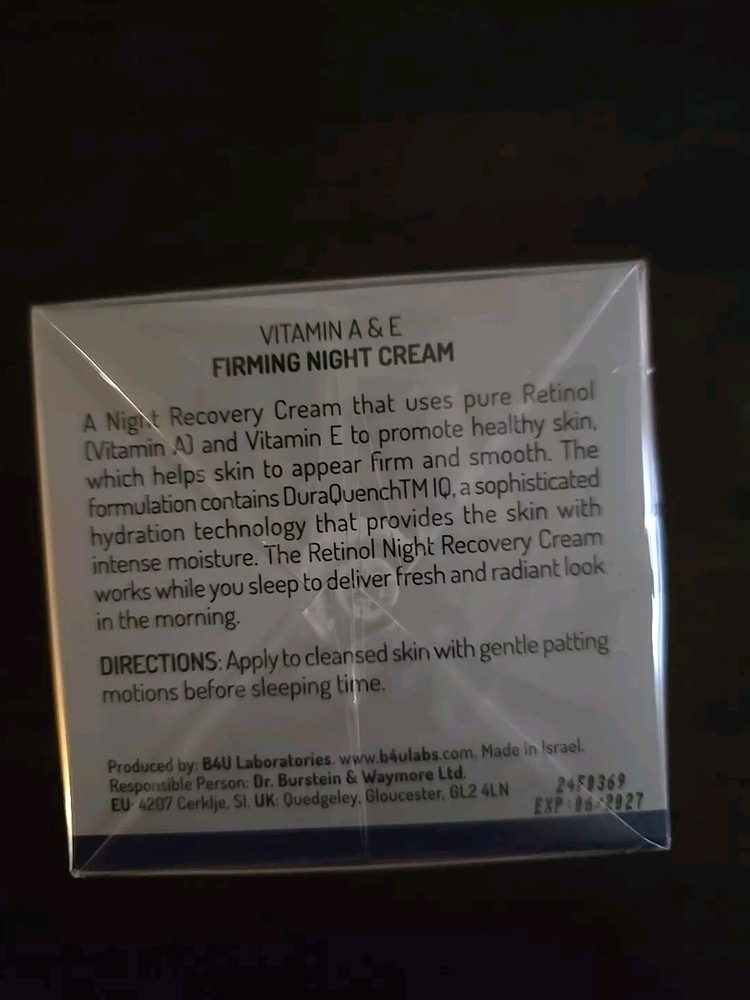 Main Purpose: Firming, Wrinkles Size: Regular Ingredients: Water, Glycerin, Retinol, Vitamin A, Vitamin E Formulation: Cream Features: Contains Vitamins, Contains Retinol Volume: 1.69 fl oz Skin Type: All Skin Types Type: Night Treatment Body Area: Face, Neck, Eyes Product Line: Night Cream Brand: Danielle Laroche Cosmetics
