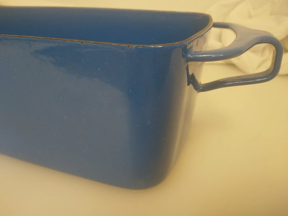 Some stains and chips on the enamel please see photos Crafted for the avid baker and home chef, this Dansk Kobenstyle loaf pan is a versatile addition to your kitchen collection. The durable enamel construction, featuring a vibrant blue hue, is suitable for a variety of ovens including electric, gas, induction, and steam ovens, as well as being compatible with pizza ovens. Measuring 11.25 inches in length, 5.25 inches in width, and standing 3.25 inches tall, this rectangular pan is perfect for creating loaves of bread, cakes, and stews. Its vintage charm, coupled with its functional design, makes it a must-have for any cooking enthusiast.