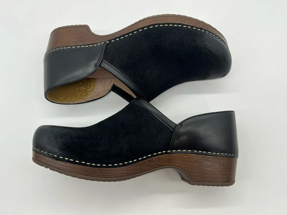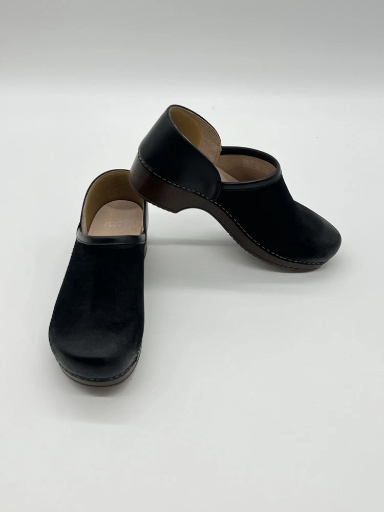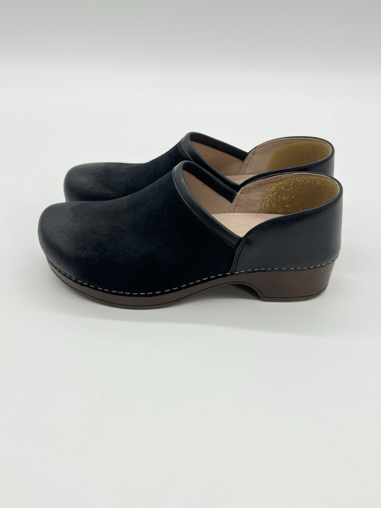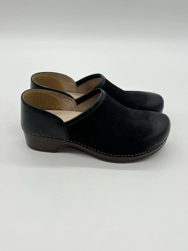 Dansko Brenna Women’s Size 39 US 8.5 Black Burnished Suede Casual Clogs Shoes. Shoes are in used condition and have signs of wear but shoes are still in great condition. Upper material is in excellent condition and very clean , inside is clean and the soles are in great condition. Nice comfortable shoes for casual wear. Condition is pre-owned. Shipped with usps priority mail. Sold as pictures. Thank you! Feel free to message me for any questions. Thank you