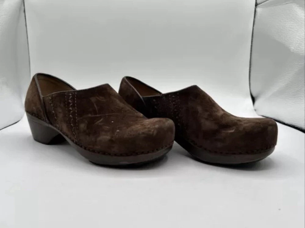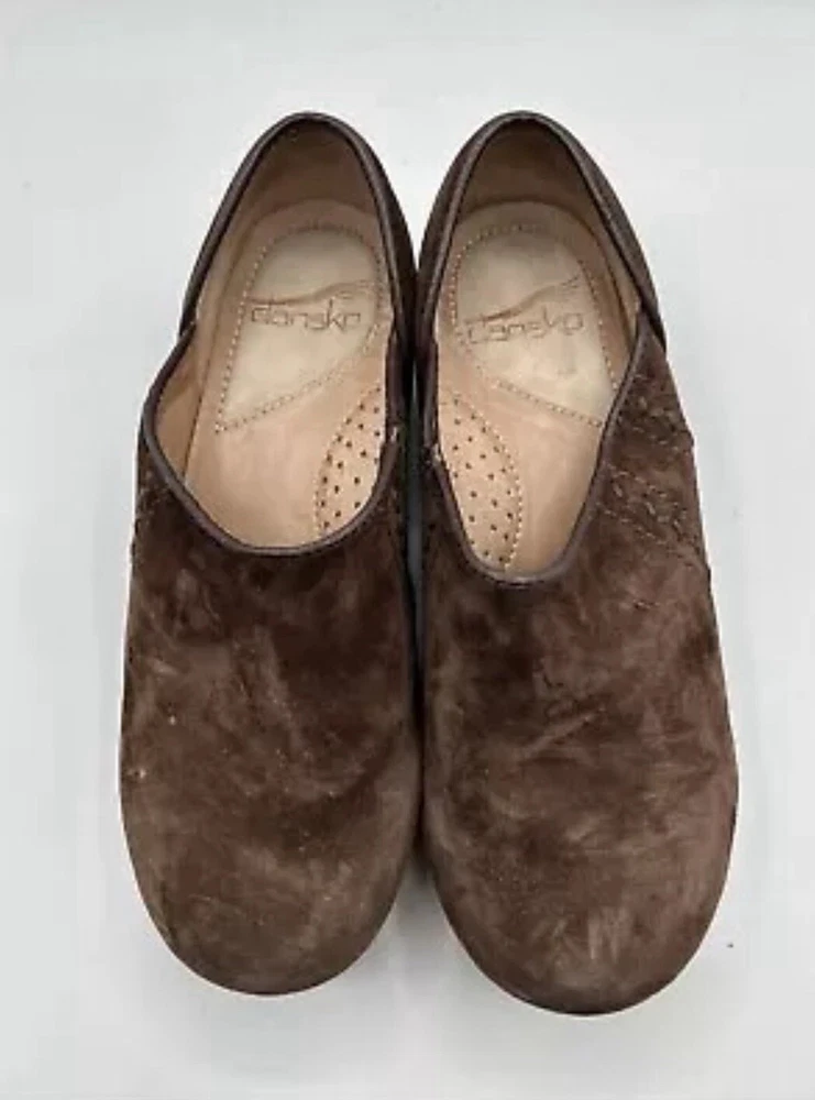 Dansko Clogs Women’s EU 35 US4.5-5 Brown Suede Comfort Nursing Shoes Slip On Pre-owned. Some wear from use as shown. See pictures.