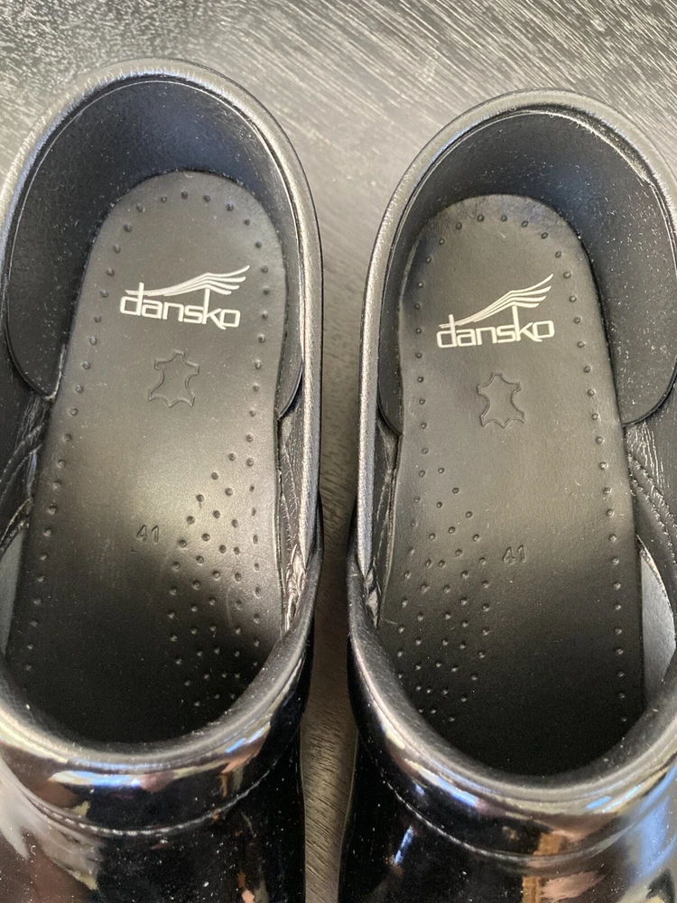 These Dansko clogs are a game-changer—super comfortable right out of the box! The black patent leather looks polished and professional, perfect for long shifts or all-day wear. The arch support is fantastic, and the slip-on design makes them so convenient. They feel sturdy yet lightweight, and the "like new" condition is spotless. Great for nurses, chefs, or anyone who needs reliable, stylish footwear. Love them!