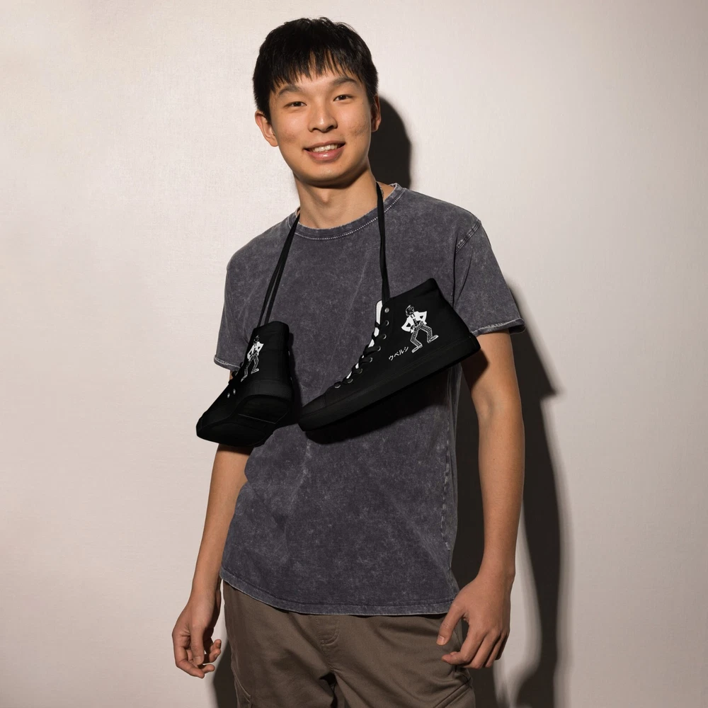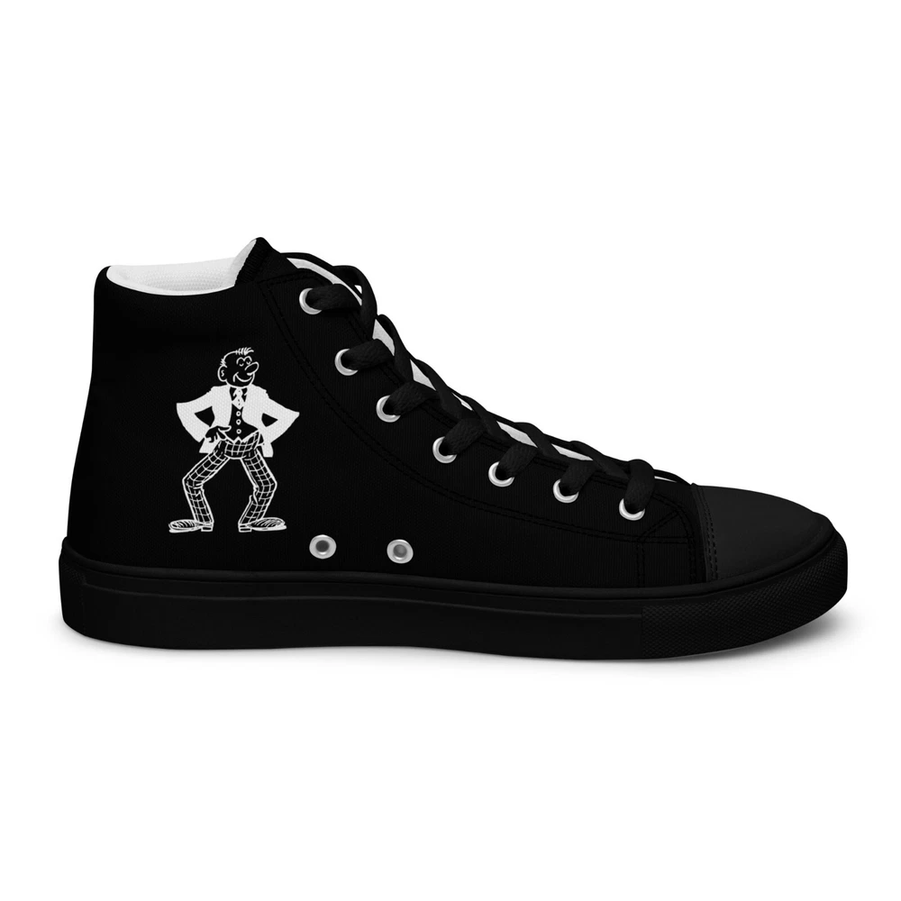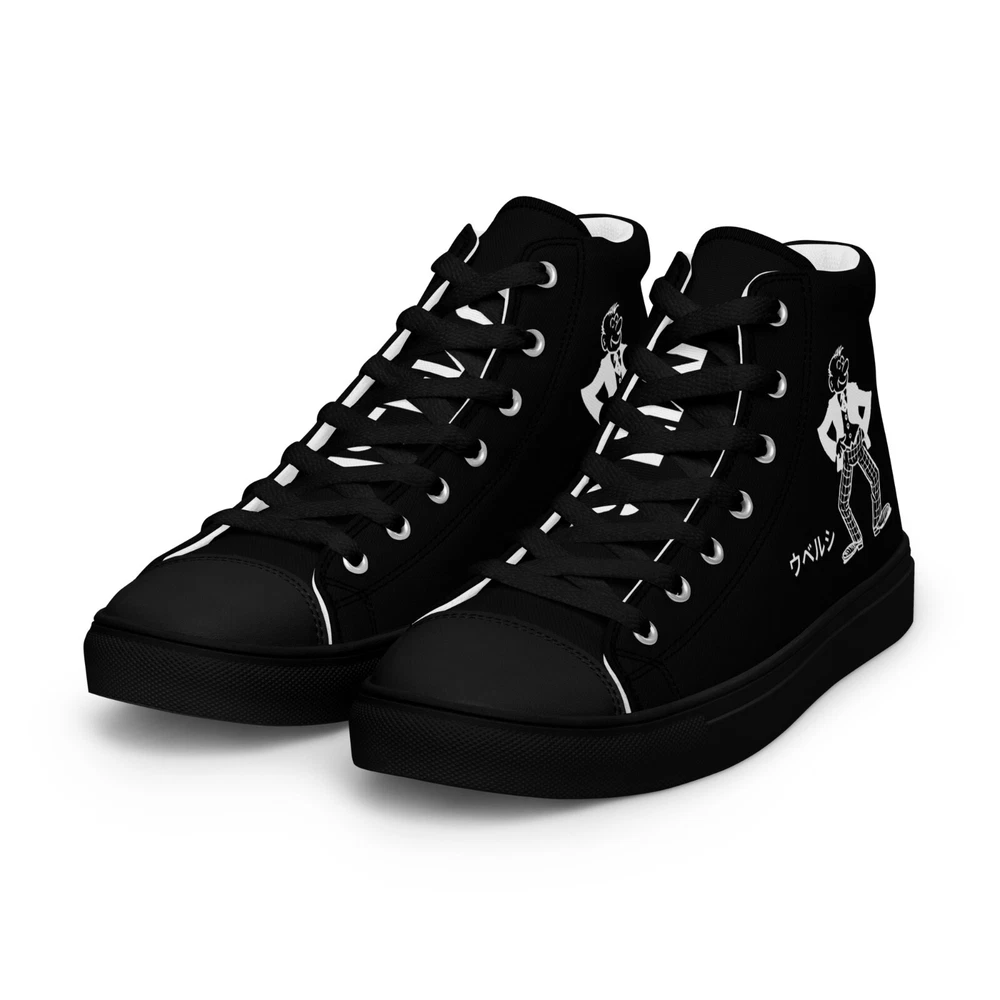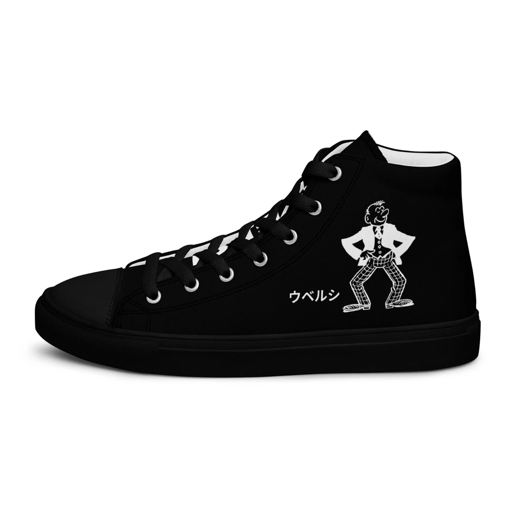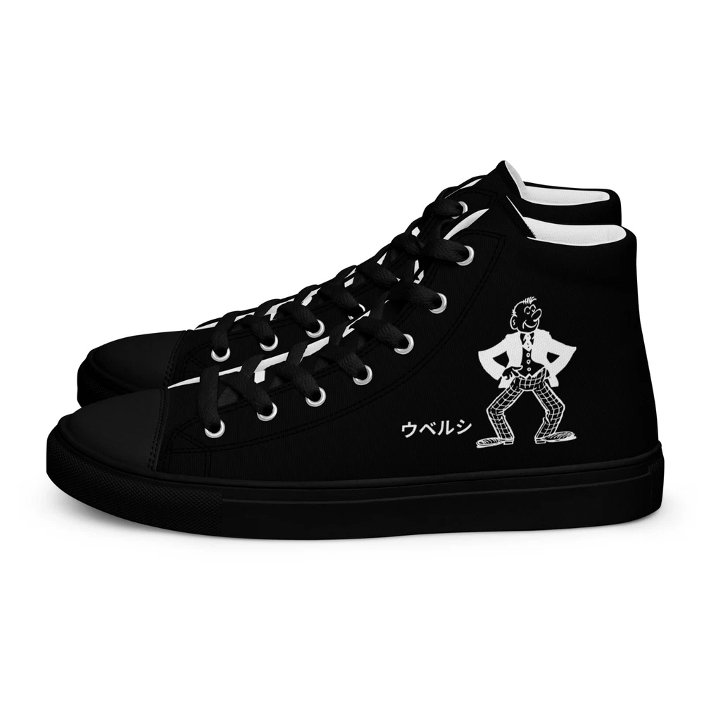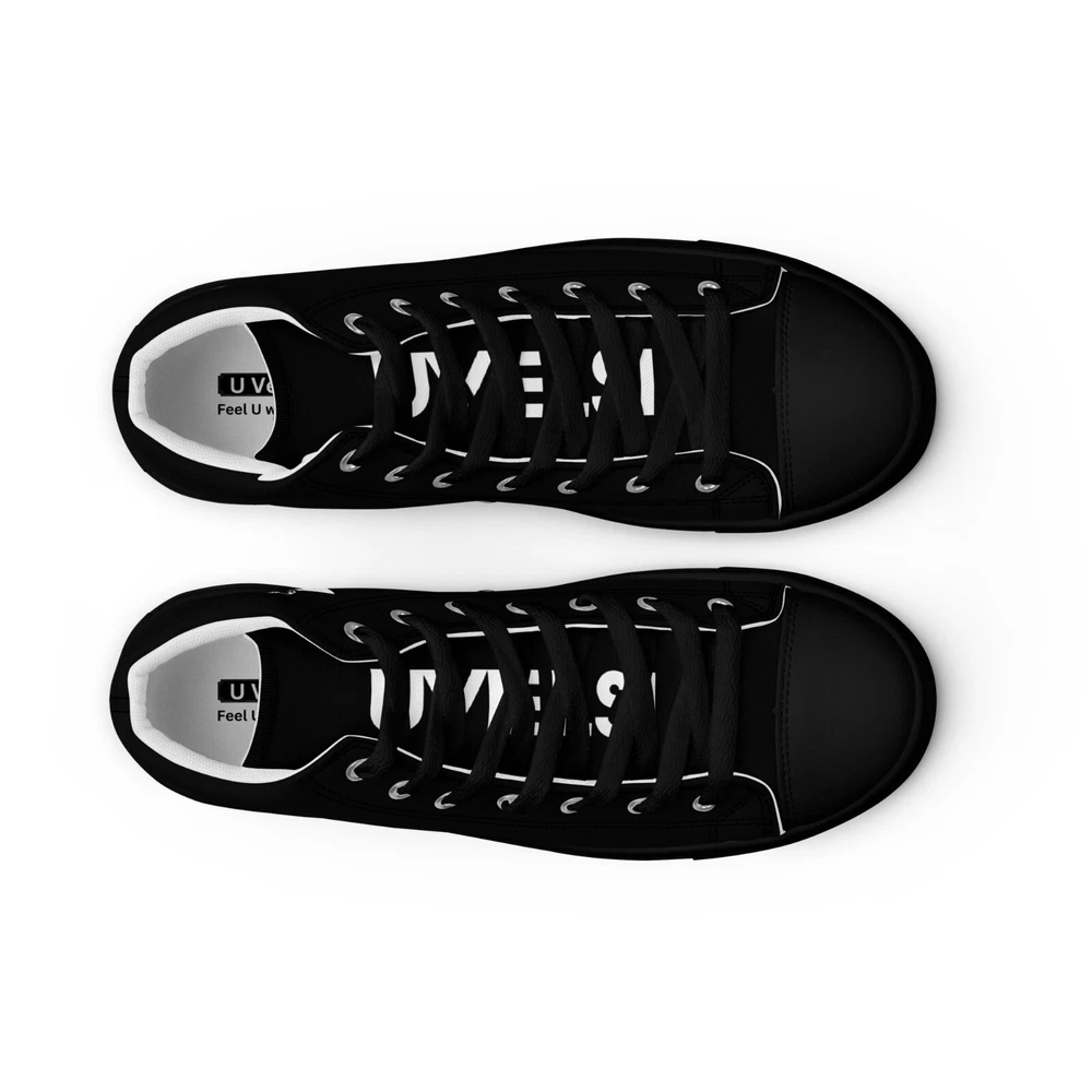Step into style and comfort with the UVelsi UiLux Dapper Dan Man Sneakers. Crafted for versatility, these high-top canvas shoes are a blend of modern design and classic comfort, perfect for a range of occasions from activewear to casual workdays. The sleek black color and solid pattern offer a timeless look, while the rubber outsole and cushioned insole ensure your feet stay comfortable all day long. With a commitment to quality, these sneakers feature a handmade construction and come with a standard shoe width that fits true to size. Whether you're hitting the gym or the streets, the UiLux sneakers are suitable for a variety of activities, complete with a lace-up closure for a secure fit. Enjoy the fusion of style and performance with these limited edition UVelsi kicks. Step up your shoe game with the High Top Canvas Shoes. These handmade, trendy shoes are sure to spice up your outfit. Get yours now! • 100% polyester, canvas upper side • Ethylene-vinyl acetate (EVA) rubber outsole • Breathable lining, soft insole • Faux leather toe cap • Padded collar, lace-up front • Soles and laces in matching colors Size guide preview (Imperial) US Men UK Europe Foot Length Japan Outsole Length 8 8 7 41 10 ⅛ 26 11 ⅛ 9 9 8 42.5 10 ½ 27 11 ⅝ 10 10 9 44 10 ¾ 28 12.00 11 11 10 45 11 ¼ 29 12 ⅛ 12 12 11 46.5 11 ¾ 30 12 ¾ 7.5 7.5 6.5 40.5 10.00 25.5 11 ⅛ 8.5 8.5 7.5 42 10 ¼ 26.5 11 ⅜ 9.5 9.5 8.5 43 10 ⅝ 27.5 11 ⅝ 10.5 10.5 9.5 44.5 11.00 28.5 12 ⅛ 11.5 11.5 10.5 46 11 ½ 29.5 12 ½ Size guide preview (Metric) US Men UK Europe Foot Length Japan Outsole Length 8 8 7 41 25.7 26 28.3 9 9 8 42.5 26.7 27 29.5 10 10 9 44 27.3 28 30.5 11 11 10 45 28.6 29 30.8 12 12 11 46.5 29.9 30 32.4 7.5 7.5 6.5 40.5 25.4 25.5 28.3 8.5 8.5 7.5 42 26 26.5 29 9.5 9.5 8.5 43 27 27.5 29.5 10.5 10.5 9.5 44.5 28 28.5 30.8 11.5 11.5 10.5 46 29.2 29.5 31.8