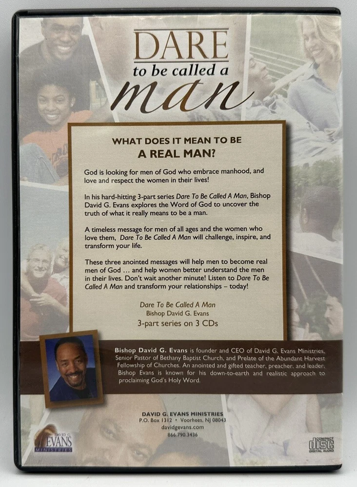 This 3-CD set titled "Dare To Be Called A Man" by Bishop David G Evans is a must-have for anyone seeking spiritual teachings. The CDs come in a standard jewel case and are graded as Very Good Plus (VG+), ensuring that you will have a great listening experience. The release title is "Dare To Be A Man" and the CDs are in the English language. The case and inlay conditions are also Very Good (VG), making it a great addition to your collection. This 3-CD set is perfect for anyone who wants to expand their knowledge of spiritual teachings.