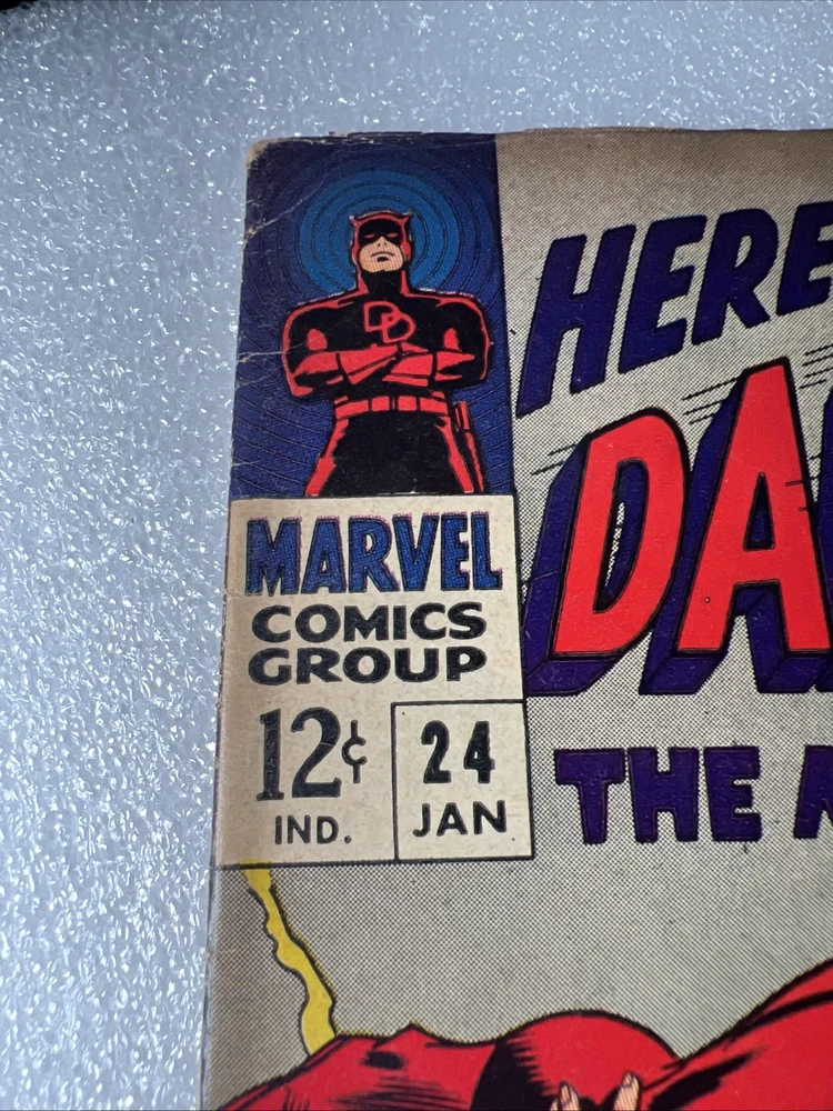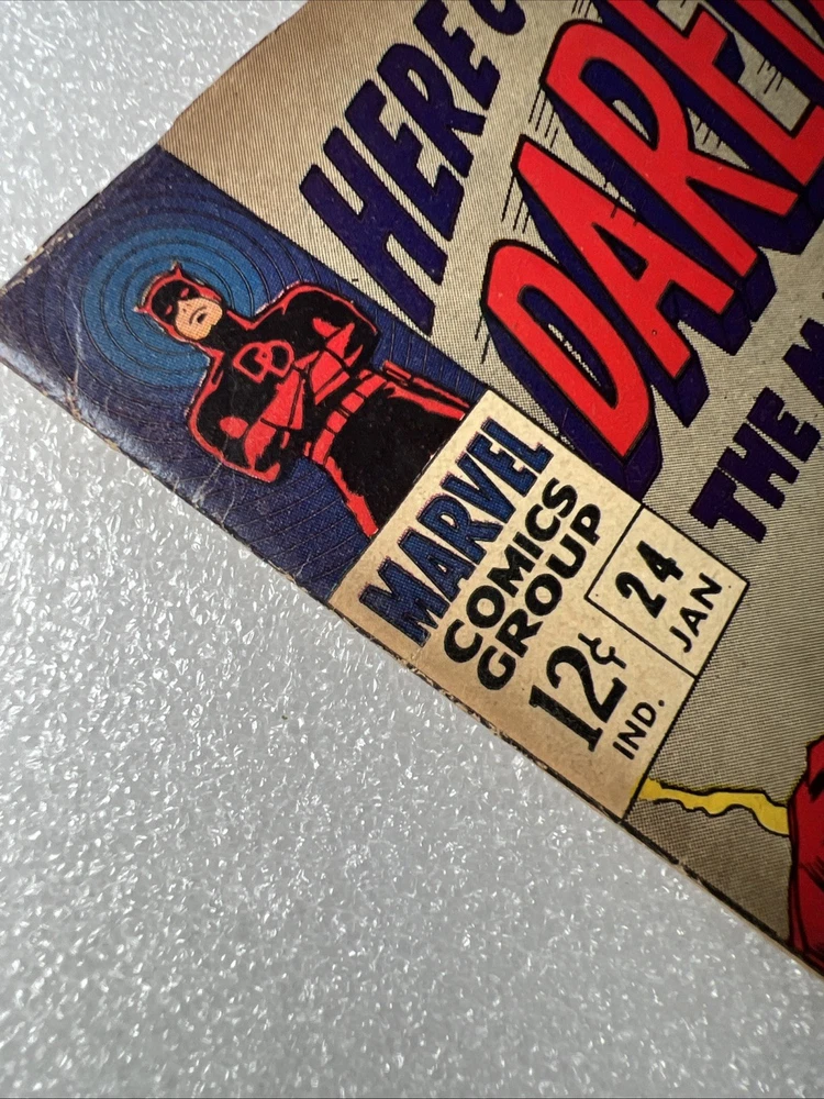 This pristine January 1967 issue of Daredevil #24, from Marvel Comics, showcases Stan Leeβs masterful storytelling and Gene Colanβs dynamic artwork in βThe Mystery of the Midnight Stalker!β Witness the thrilling first appearance of Ka-Zar (Kevin Plunder), alongside Zabu the sabretooth tiger and the villainous Plunderer. Daredevil journeys to England, clears Ka-Zarβs name in a savage clash, and faces a shocking final revelation from Spider-Man. Off-white pages, tight staples, vibrant colorsβ a cornerstone Silver Age key for discerning collectors of Marvel history.