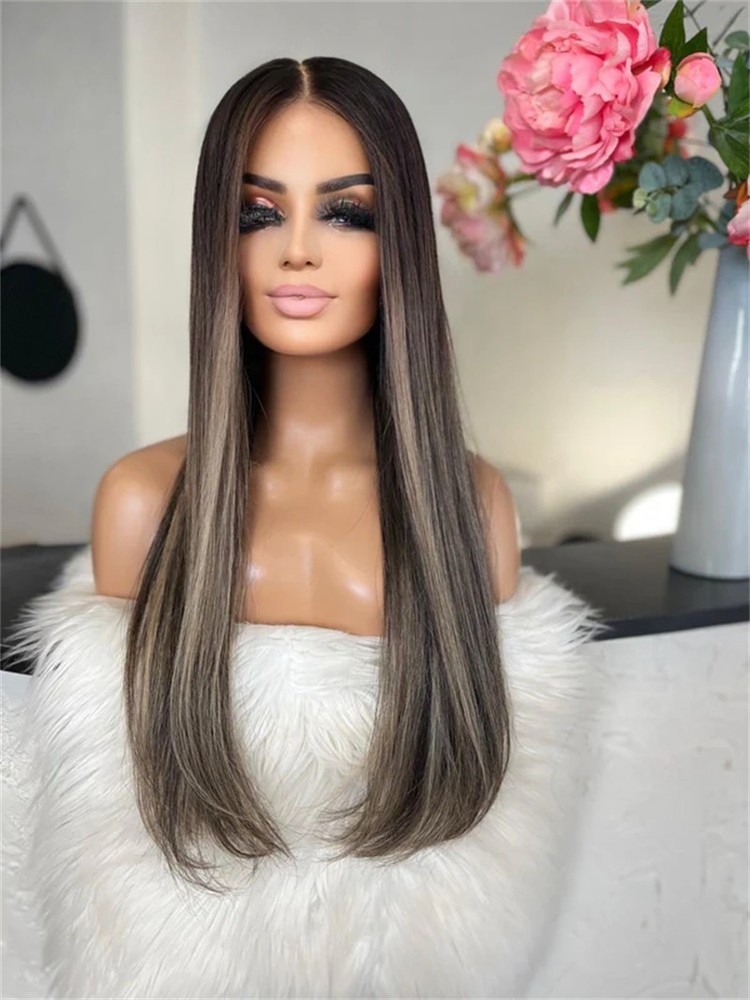 $ 256.55Ombre Caramel Brown Balayage 13x4 Lace Front Wigs 100% Human Hair Wig