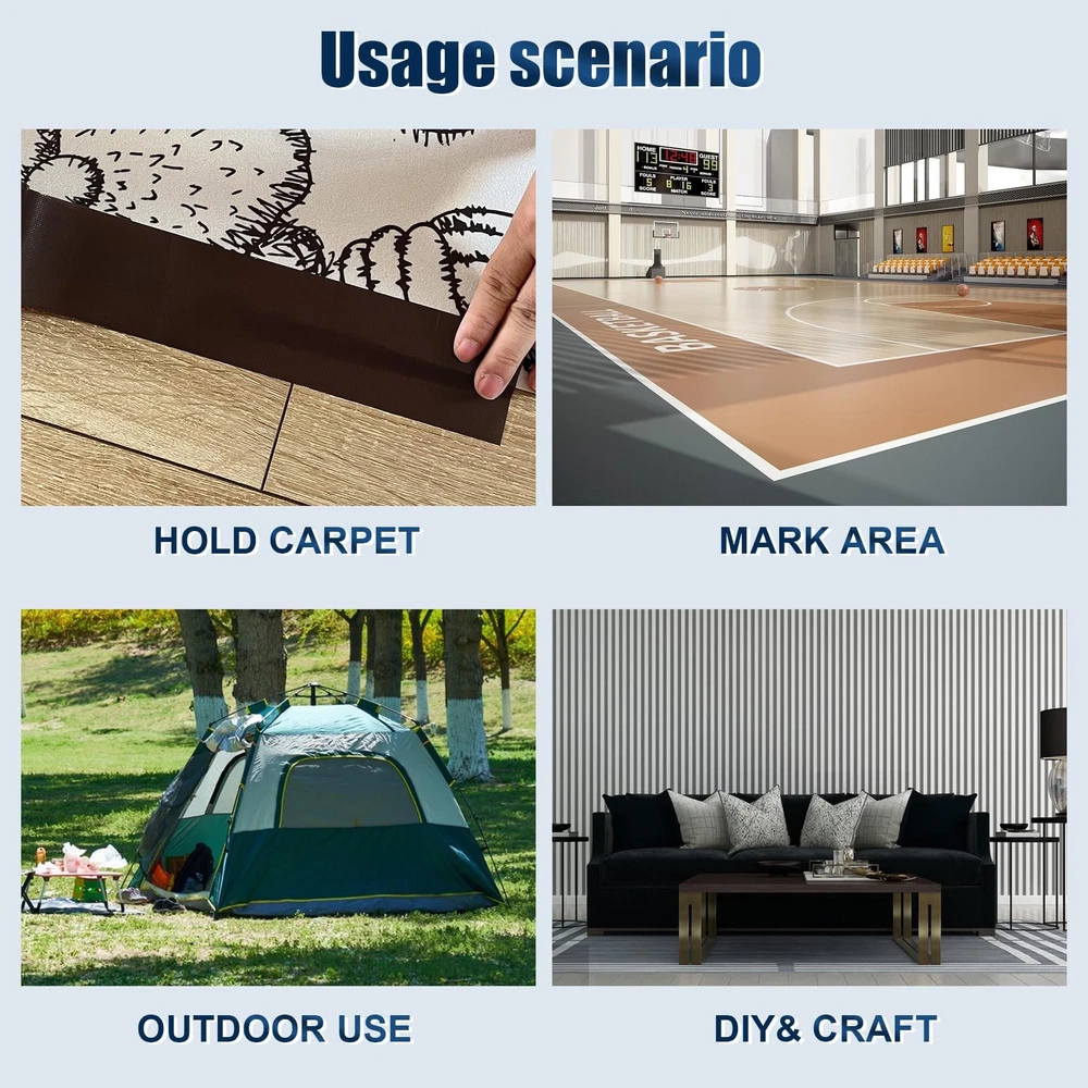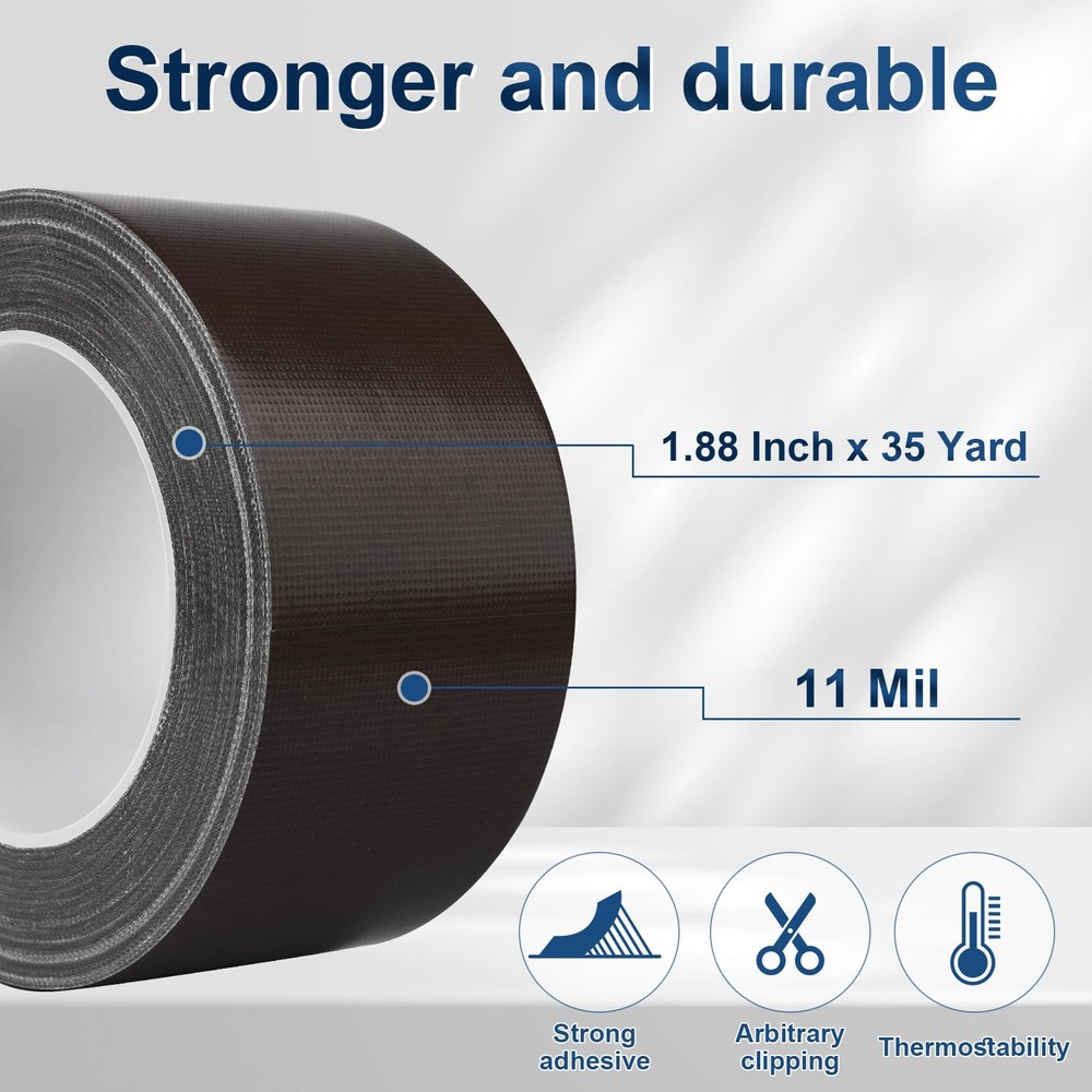 Brown Duct Tape: Duct Tape 1.88 Inch x 35 Yards, Heavy Duty, Waterproof, Great for Repairs, Packaging, Arts Crafts and DIY Projects, Color coding, Organization, Protecting your walls and floors Strong Adhesion: The duct tape heavy duty is designed with strong adhesion to ensure a secure bond on versatile surface. Providing a strong and long-lasting hold even under the most challenging weather. This heavy duty duct tape makes it ideal for use both indoors and outdoors Duct Tape Heavy Duty Waterproof: Duct tape is made of polyethylene backing which is waterproof and impermeable, ideal for all weather indoor or outdoor waterproofing winterizing emergency repairs Easy to Use Duct Tape: easy to tear by hand horizontally and vertically,without help of scissors,you can apply this white duct tape anywhere you need immediately,make your works become more easier Good Industrial Partners: high tensile strength, appropriate elongation at break, easy to mechanize and manual winding. Prevent metal pipes from aging and corrosion, and increase the service life of pipes. Can be used for the winding of air conditioning pipes, the bundling of everyday tools