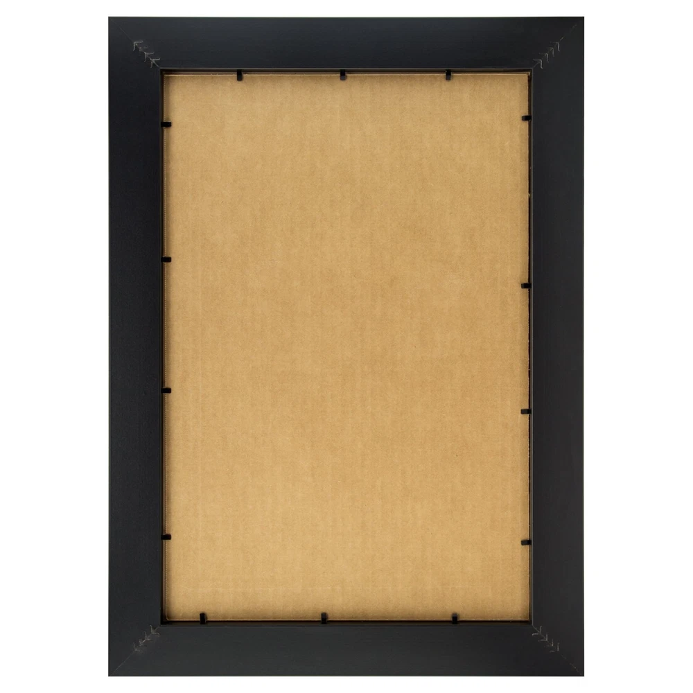 Country Rustic style; dark brown; distressed pine appearance; smooth wrap finish Frame includes: clear acrylic facing, rigid cardboard backing and wire hanging hardware kit (some assembly required) Frame holds a 16 inch by 20 inch photo/print/poster (viewable area is slightly smaller) Frame moulding is 2 inches wide; wood composite material Made in the U.S.A.