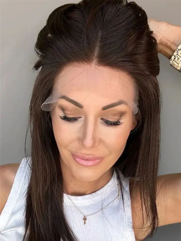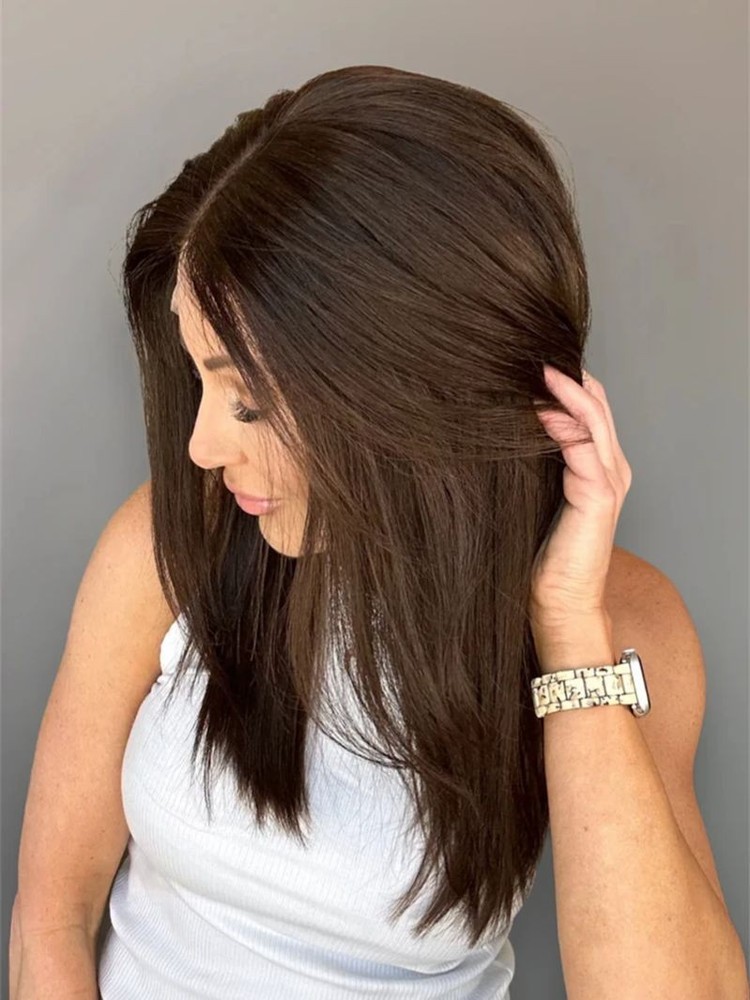 $ 108.09Dark Chocolate Brown Highlight Wig Wave 100% Human Hair 13x4 Lace Front Wigs