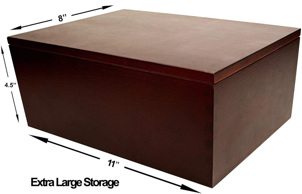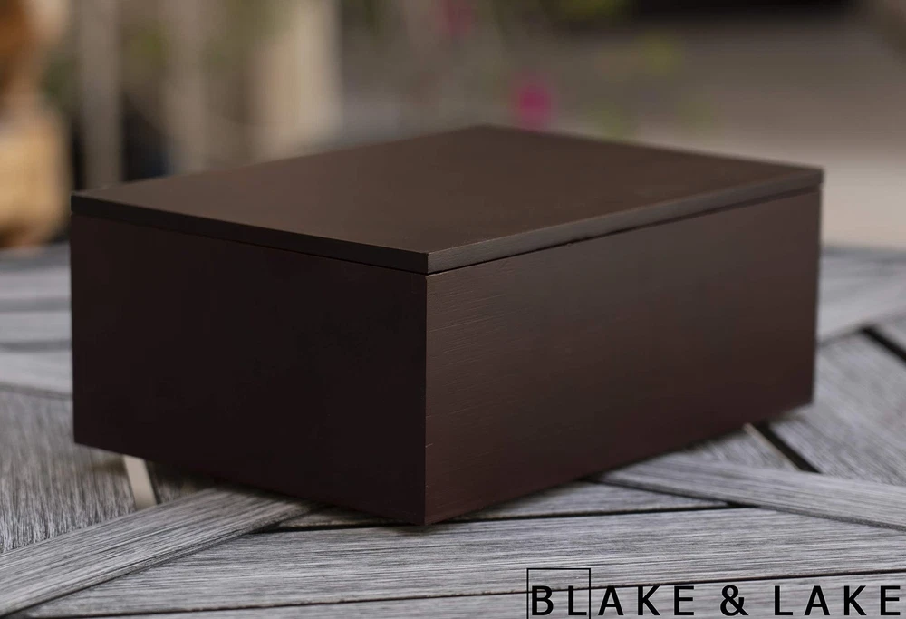 Large Wooden Storage Box is Perfect for your Home or Office Space: Tidy up your home or office with a Handcrafted Bamboo Storage Box with Wooden Lid! your , organize your office supplies, arrange your keepsakes and collectibles! Classic Dovetail Design adds a stylish and classic look anywhere in your home or office. Perfect Size! Outside dimensions: 11” x 8” x 4.5” Inside dimensions: 10.5" x 7.5" x 4 Premium bamboo wood with a clean and trendy dark brown finish inside and out! 100% Natural and eco friendly wood and stain! Give the gift of organization! Comes with a Gift Box which makes it perfect for gift giving. Bamboo Storage Box with lift-off lid and dovetail edges! A classic design that will display beautifully anywhere in your Home or Office! Another high Quality Wooden Keepsakes box from ! Sized Right for the Home of Office. Dimensions are 11” Long x 8” Long and 4.5”. Inside dimensions are 10.5” long, 7.5” long, and 4.” deep. a box of tissues, remotes, , jewelry, cards, collectibles, soaps, hand-towels, shaving supplies, and kitchen utensils! Tidy Up Your Home or Office Space by decluttering crowded kitchen spaces, work areas, desktops, bathrooms, living areas, closets, and night stands. The easy and stylish way to organize and stash away your , keepsakes, jewelry, and assorted accessories! Order extra to organize your home office, sports cards, collectibles, art supplies, and hobby items! Handcrafted Quality with premium bamboo wood, finished lid, and a classic wood finish. This Keepsake box is designed to add charm and a luxurious feel to your home or office and will last a ! All wood was sourced from eco friendly and sustainable sources. Give the Gift of Organization this Holiday Season with a wooden storage box by Blake and Lake! Comes with the premium packaging which makes it perfect for gift wrapping.