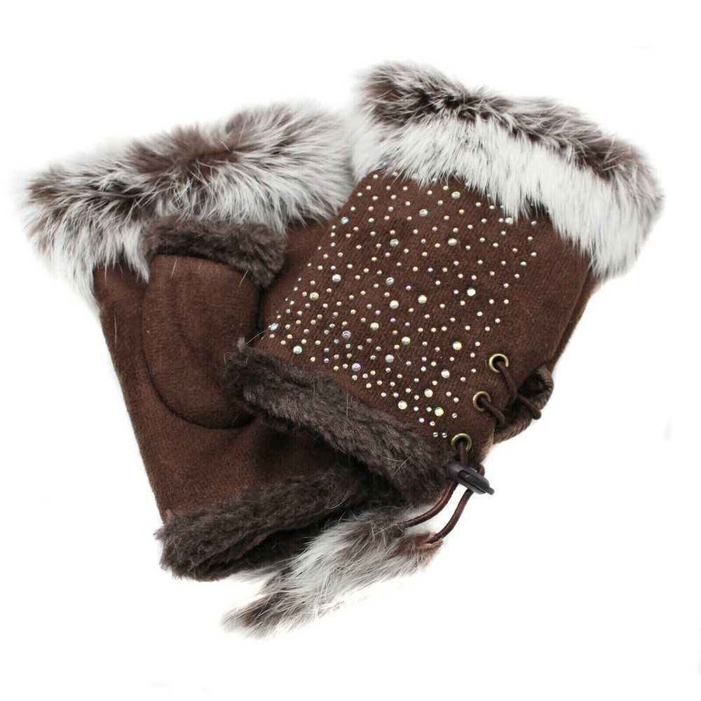 Brand New sealed w tags. Womens Fingerless Gloves Faux Fur Rhinestones Bling Studded 1 Dark Brown pair and 1 White pair left! Great for texting and typing! Thanks for your interest! All sales final, no refunds. Thank you.