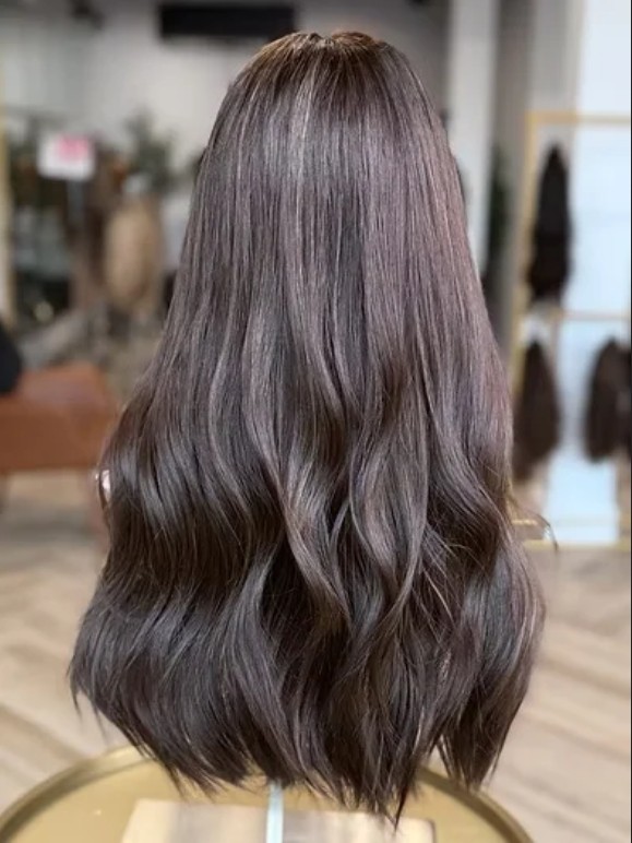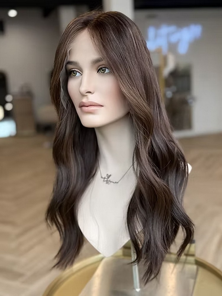 Dark Ash Brown Balayage Long Straight 13x4 Lace Front Human Hair Wig for Women