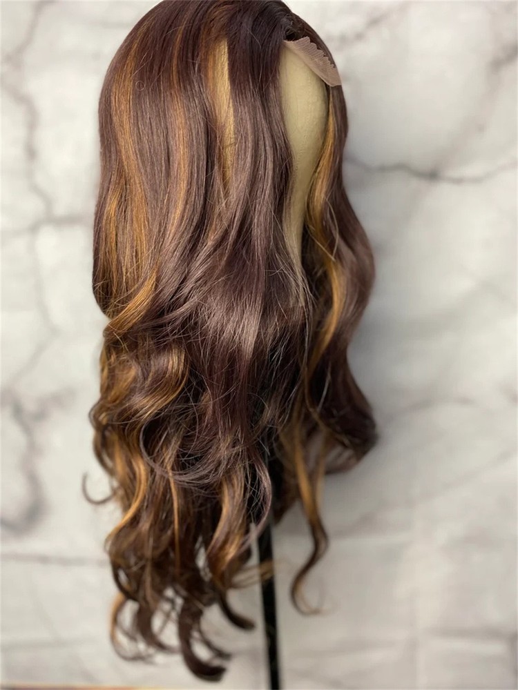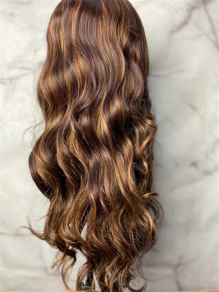 $ 105.6Human Hair New Women's Long Natural Light Brown Wavy Full Wig 14 Inch
