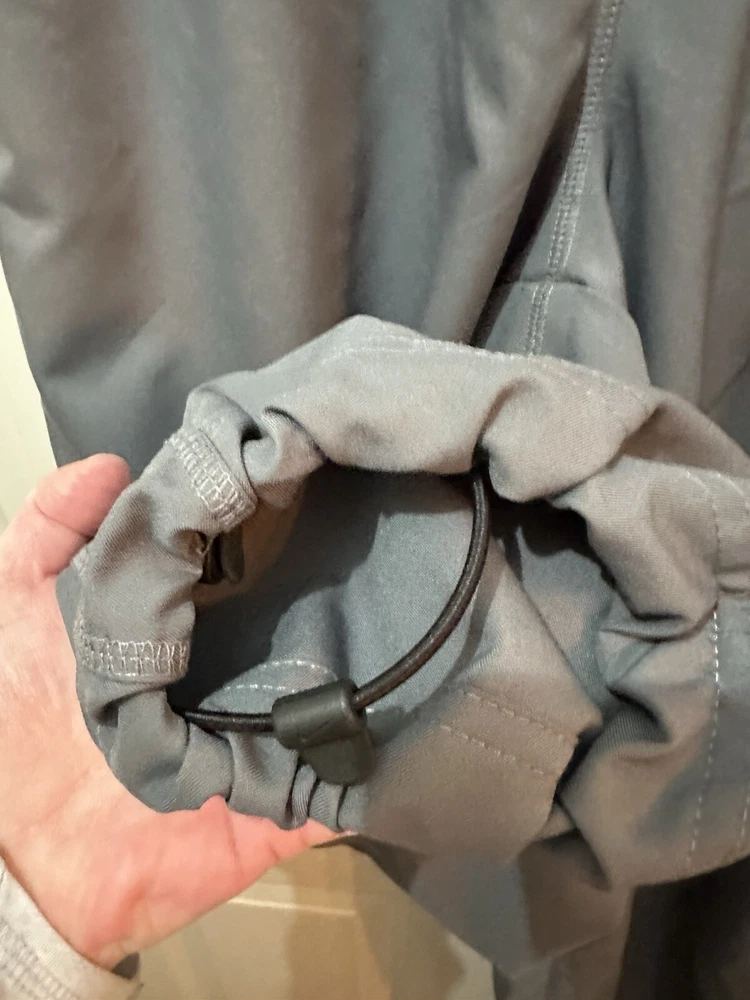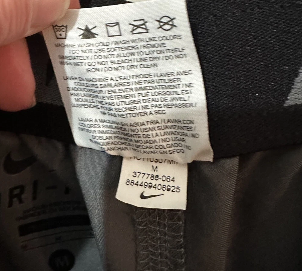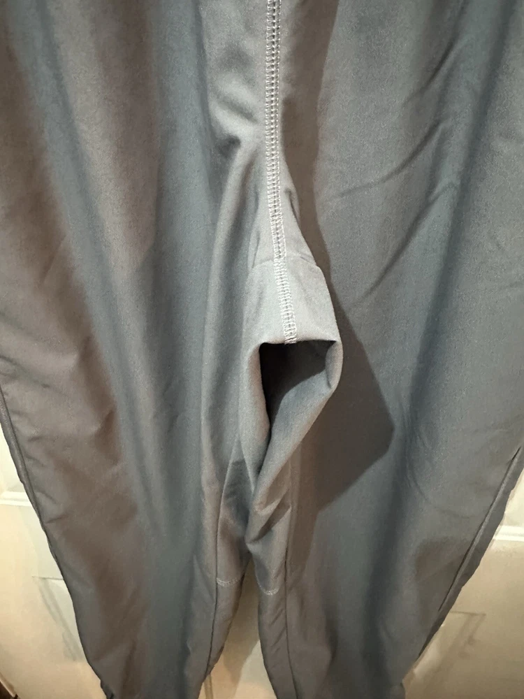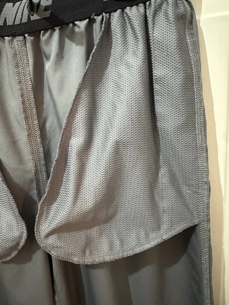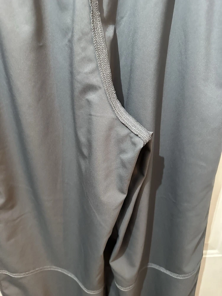 Preloved condition. These dark gray Nike Dri-Fit Windbreaker Pants in size Medium are designed for athletic wear. Made of 100% polyester blended fabric, they feature an elastic waist and pockets for convenience. With a solid pattern and Nike branding, these track pants are suitable for various activities like gym training, basketball, and running. The pants are machine washable and ideal for all seasons.