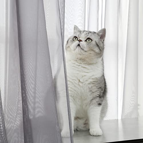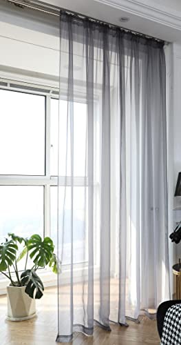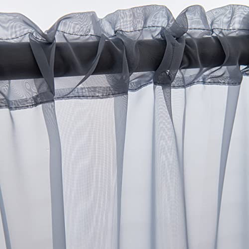 Dark Grey Sheer Voile Window Curtains 95 Inch Length 2 Panels Light Filtering