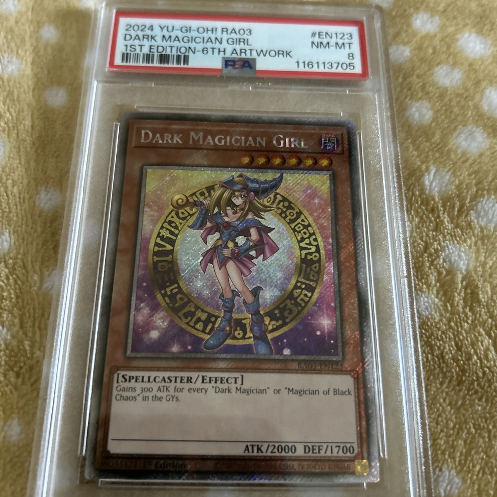 Card Type:EffectCard Name:Dark Magician GirlLanguage:EnglishRarity:Platinum Secret RareSet:Quarter Century BonanzaFeatures:1st EditionAttack/Power:2000Game:Yu-Gi-Oh! TCGCreature/Monster Type:SpellcasterCard Number:RA03-EN123Manufacturer:Konamibrand:KonamiLevel:6Additional Description:Dark Magician Girl (Platinum Secret Rare) (A)Card Text:Gains 300 ATK for every "Dark Magician" or "Magician of Black Chaos" in the GYs.