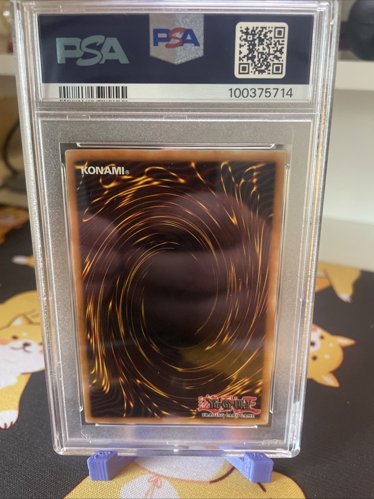Dark Magician SYE-001 from Starter Deck: Yugi Evolution is a 1st Edition Super Rare card from the Yu-Gi-Oh! TCG. Manufactured by Konami in 2004, this graded card has a Grade of 7 by Professional Sports Authenticator (PSA).