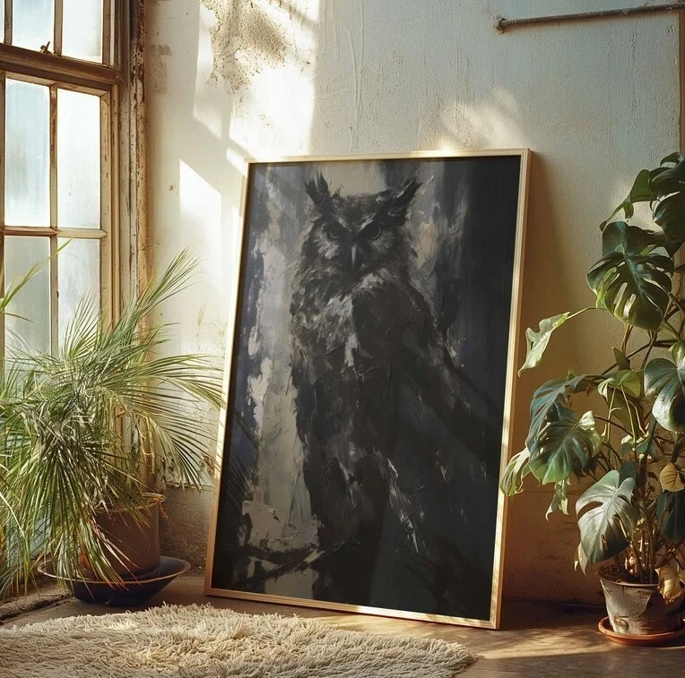 Dark Owl Wall Art | Spooky Halloween Decor | Haunted Nature Illustration