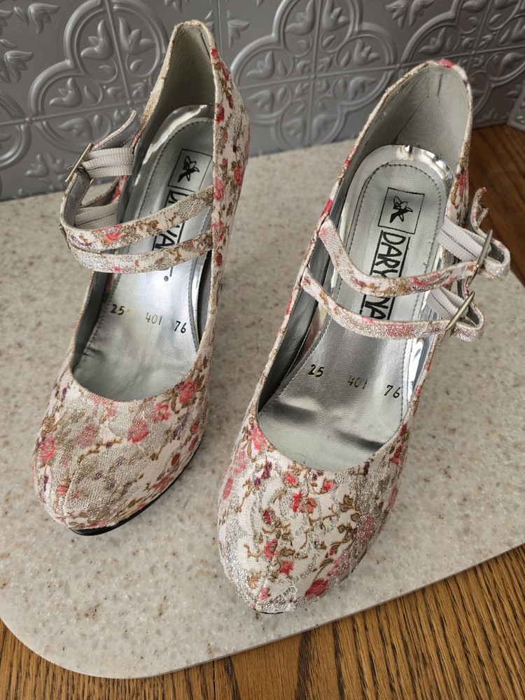 Daryana Lacy Flower Wedding 4" Heel Platform Bohemian Romantic Size 9. Condition is Pre-owned. Shipped with USPS Priority Mail.