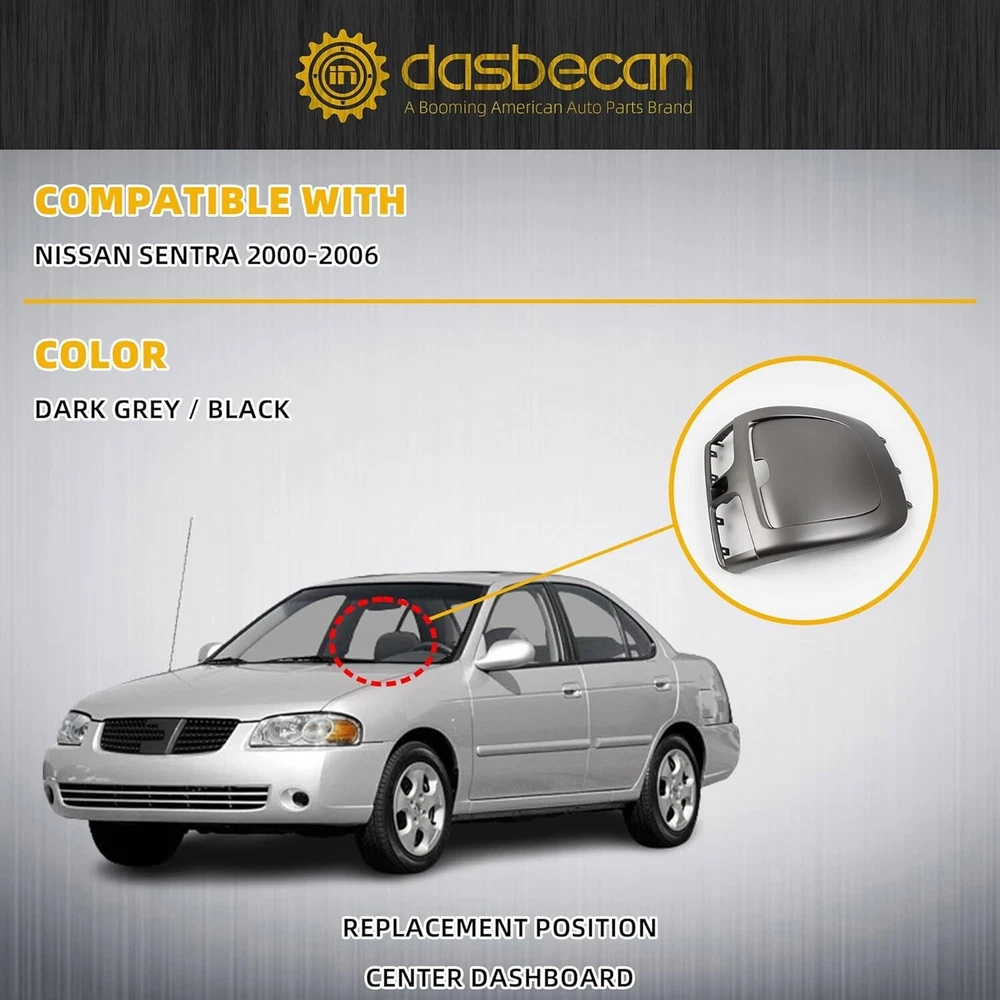About this item 【Comaptible With】The Outlet Air Vent Panel Compatible With 2000 2001 2002 2003 2004 2005 2006 Nissan Sentra. 【Part Number】The Part Number of Dashboard Air Conditioning Outlet Panel is 68260-5M002,682605M002. Please Confirm Your Vehicle Model and Part Number Before Purchase. 【Superior Quality】The Dashboard Vent Panel Is Made Of High-Quality ABS Material, Anti-Aging, Anti-Scratch, Easy Cleaning. And It Is Similar In Color To Your Car Interior, Enhancing The Appearance Of Your Car. 【Easy Install】Center Dash A/C Outlet Air Vent Panel Is Based On Raw Data Production, Easy To Install Within A Few Minutes. It Is Located On Adsn Center A/C Vent. 【Package list】Dark Gray/Black Center Dash A/C Outlet Air Vent Panel*1PC. Shipping We offer FREE shipping on all orders! We ship within Three business days of payment, usually sooner. We use a selection of shipping services such as UPS, FedEx, USPS etc. We only ship to the lower 48 states, no APO/FPO addresses or PO Boxes allowed. Local pickups and combined shipping options are not provided at this time. Return You can return a product for up to 30 days from the date you purchased it. Any product you return must be in the same condition you received it and in the original packaging. Please keep the receipt. Payment We accept payment by any of the following methods: PayPal Please pay as soon as possible after winning an auction, as that will allow us to post your item to you sooner! Feedback Customer satisfaction is very important to us. If you have any problem with your order, please contact us and we will do our best to make you satisfied. Contact Us If you have any queries, please contact us via ebay. We usually respond within 24 hours on weekdays. Please visit our eBay store to check out other items for sale! Thank you for shopping at our store. Disclaimer We are working with different suppliers in USA to deliver the item to your doorstep. If you have any issues regarding the item, Feel free to ask.