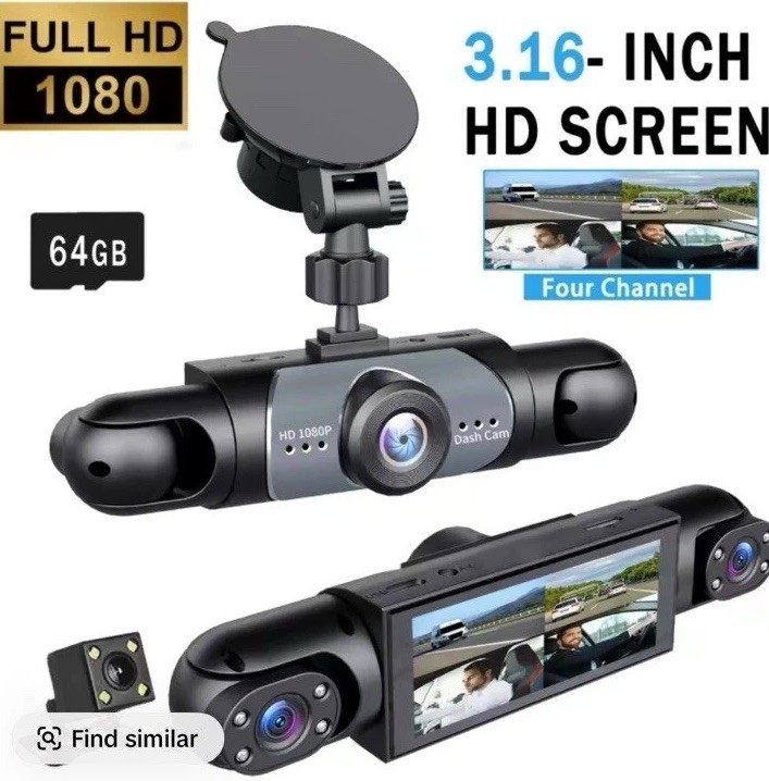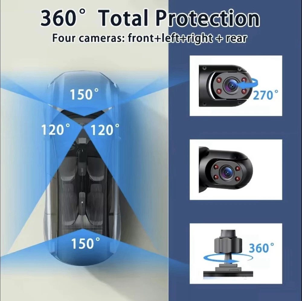 The Dash Cam 4 Channel 360° Front Rear Inside DashCam is a high-quality car DVR camera that offers FHD 1080P resolution and 64GB of storage capacity. With its 3-inch LCD screen display, this camera allows for easy viewing and operation. It features a built-in G-sensor for motion detection, dual lenses for front and rear views, and a wide view angle of 170°. The camera also supports loop recording, WiFi connectivity, and comes with a 64GB TF card included. Perfect for capturing all angles of your vehicle in crisp and clear detail.