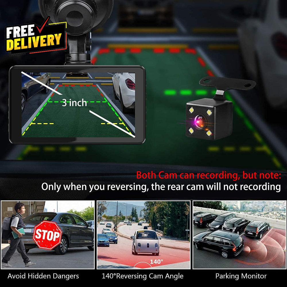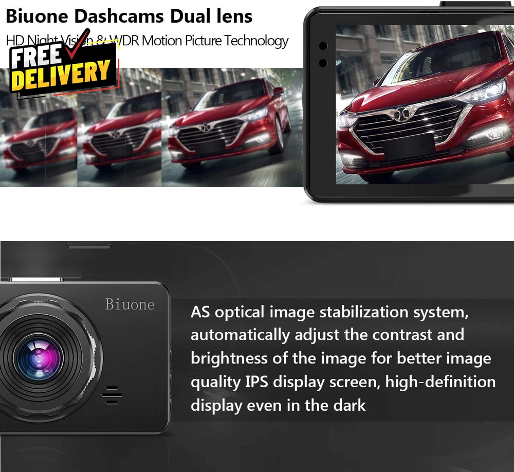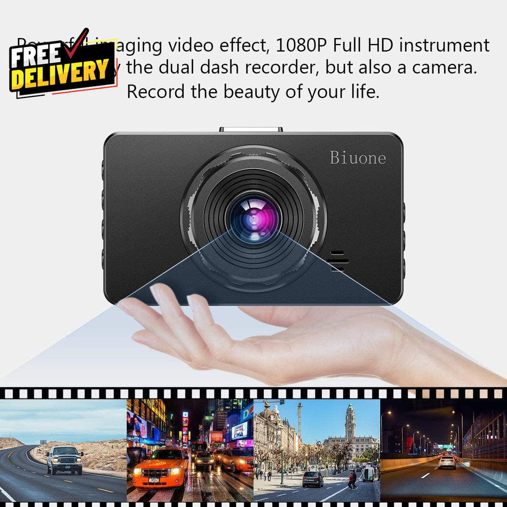 Store New Arrivals Add to Favorite View Feedback Contact Dash Cam Front and Rear, Dash Camera for Cars with 32G Card Super Night Vision, Car Dash Cam 1080P Dashboard Camera with G-Sensor, Parking Monitor, Loop Recording, Motion Detection Car Camera Description [Dash Camera for Cars Front Rear] --- Our car dash cam cigarette lighter charger comes has USB Type-c port, no worry about the charging problems of mobile phones when using this dual dash camera. Combines the f1.8 aperture and WDR tech, you can playback each clear detail on dash cam/PC. Dear you can use the front dash cam only or use dual car dash cam front and back, both can recording well [Car Cameras Dash Cam with Card] --- Vital dash cam can endless working under Loop Recording function. No worry about this car camera will full of storage! The dash cams with 32g card FHD 1920X1080P at 30 fps video enable to capture every road conditions and license plates details. If there are any issues (such as damage or loss of brackets, accessories, etc.), please contact us and we will solve the problem for you and arrange to send it out [Wide Angle Front and Rear Dash Cam] --- Dash cam front camera for car comes with 170°wide field of vision and 140° for dash cam rear. Ultra-wide field of car cameras reduces the blind spots and captures more details. You can also set the camera for car to turn off the screen auto but still keep recording, won't distract your driving. In addition, there are 4 lens switching mode that you can choose [Plug and Play Front Dashcam for Car] --- Front rear dash cam with card, but you will find that you can easily and securely mount the suction cup to your windshield in seconds. This car dash camera's operation is still simple and friendly for new users. If you don't need the Reversing Mode, ther rear camera also can be very easily, just plug and play & hide the wire is ok [On Car Camera - Dash Cam Front and Rear] --- Dash camera G-sensor function make our car safety camera can auto detect and lock the driving recording that we need. Truly restored the driving video/photo with highly sensitivity. Biuone dash cams for car does not support an App to view playback, not wifi car cam but can viewing playback on the front car camera itself or computer. Not dash cam wifi! No GPS Installation of Dual Dash Camera - Rear Dash Cam Install : You can connect the red part of rear camera cable with the positive pole of reversing light, so that it will appear reversing mode when you parking, No recording when you reversing. And if your car already have built in reversing system monitor, Just wrap it directly with tape( the rear camera can keep recording at reversing period) dash cam dash camera install friendly for lady Front rear car dash cam with 32G Card, already inserted in Dash Car Camera.Biuone A20 dash cam for truck/cars/van/suv/taxi (longer extension cable for the dash rear camera is not in the package, rear cam cable longs 6m ) About this dash cam: the rear camera does not display/how to turn off the sound/how to play the rear mirror dash cam file or play it on the computer (1: has question on installation, please let us know. 2: press "down button" speedly turn on/off the audio. 3: Long press "up/down button" to switch the Rront and Rear car camera recording file when you on playback mode, A20 car dash camera support MOV computer playback format Our front car camera is power by cigarette lighter dash camera charger, dashboard camera will auto turn on/off with your car. Don't worry the dashcams for cars front won't drain your car battery. FHD 1080P dash cam front, rear dashcams for cars Loop Recording: When 32g card(Included) is fulled, the dash cams auto overwrites the oldest videos to ensure continuous recording,which keep recording your happy driving journey. Dual dash camera front and rear with 32g card About the Battery: all the battery of car dash cam in the market, only support auto turn on and recording a short time for the urgent situation when you parking. Needs to plug the dual dash cams charger all the time. Do't use the USB Cable as charger, the cable and the USB card reader only used to connect with your computer and playback the recording file ( you can playback on dash cam & can playback the car camera file on your computer) Product description FHD 1080P Front and Rear Dash Camera with 32G Memory Card 1 Dashcam Loop Recording 2 Dash Camera G-Sensor 3 Parking Monitor Dash Cam 4 Super Night Vision Dash Cam with Wide Angle and Reversing Guide Line Easy Installation Car Camera Front and Rear - Plug and Play Dashcam Recording Video Playback Ways : You can see the video on dash cam and PC Do I need to buy a separate memory card for this dash cam? No, our car camera comes with 32G card. ( already inserted in dash camera) Can I easily install and remove this front and rear dash camera? Yes, Our car camera are mounted with suction stand, which can be easily installed and removed, and the manual also has installation steps to help you quickly complete the installation. When l press the MENU button but nothing happens. This is dash cam normal during recording. Before pressing the "Menu" button, press the "OK" button to pause the recording before continuing. More about this dash camera. 3 inch IPS screen dash cam front: 1080P + rear camera : 720P + Free 32G card for car camera ( Video: H.264 compression; MOV Format); Please note: This dash cam requires constant power via a cigarette lighter plug. And please better use our charger. Item model number A20 Whats in the box Memory Card, User Manual, Suction Cup, Cable, Car Charger, Installation Tool Connectivity technologies USB Mounting Type dash camera front and rear wired Video Capture Resolution 1080p car dashcams Color A20-32G Other display features Wireless Product Dimensions 3.54 x 1.97 x 0.51 inches Batteries 1 A batteries required. (included) Vehicle Service Type Car Item Weight 1.13 ounces Connectivity Technology USB Field Of View 170 Degrees Model Name A20 Da