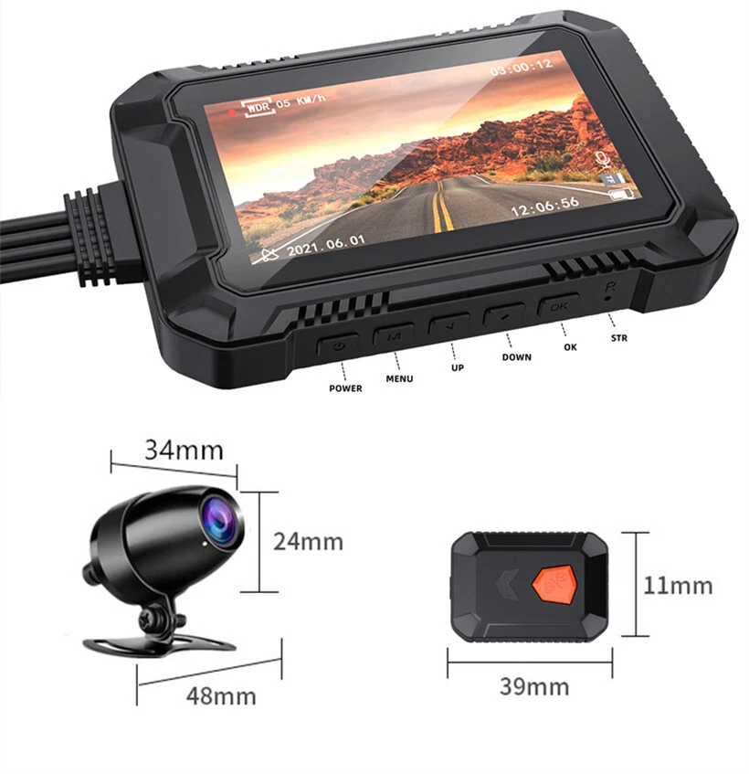 Product Description WiFi Motorcycle DVR Dash Cam Full HD 1080P Front Rear Dual Lens Waterproof Camera GPS Logger Recorder G-Sensor Specification: Product name: Front and rear dual recording 1080P high-definition motorcycle driving recorder Product color: black Lens wide angle: 150° wide angle Resolution: 1920x1080P Front camera: AHD1080P, 2G4P, 2 million, 1/2.9"", F=1.8, D=155° Rear camera: AHD 1080P, 2G4P, 2 million, 1/2.9"", F=1.8, D=155° Photo resolution: up to 12M Working frame rate: 30fps Video codec: H.264 Video format: MP4 (storage in TS format) Photo format: MJPEG Screen size: 3 inch IPS GPS: Support WIFI: Support Loop recording: support G sensor: 3-axis G sensor (low/middle/high) TF card: up to 128GB (C10) ,not included TF card Working voltage: DC5-24V Working current: 0.7A (typical value) Working temperature (℃): -20℃~80℃ Power supply mode: power supply from motorcycle battery, USB power supply Menu language: Chinese, English, Russian, Spanish, German, French, Italian etc. Hint: The display is not waterproof, it is recommended to put it in the trunk after installation for easy hiding and protection Packing list: host*1, camera*2, Velcro*2, fuse box power cord*1, camera button*1, strap*1, double-sided tape*2, camera extension cable*2, camera bracket*2 , GPS *1, user manual *1 Payment Returns Contact Us Shipping We accept payment by PayPal only ! Payment should be completed within 5 days after buyer places the order,or else an unpaid case will be opened in order to cancel the transaction. If you can not pay in time, please contact us. e-check from PayPal will only be processed once the payment clears. All of the items will be shipped to buyer's EBAY address,please confirm your address on Ebay before you buy.Your order will be usually shipped out the same or next business days once the payment is made and cleared. 30-day Warranty with Exchange for defective, malfunctioned, incorrect or parts-missing items. Please notify us and return the item with all parts and accessories packed and marked "FOR EXCHANGE" within 14 days of receipt. If defective, malfunctioned or parts-missing items are no longer available, a refund may be issued. All returning postage costs will be the responsibility of the buyers under all circumstances. If you encounter any problems about anything, please feel free to contact us and we will do our best to assist you solve the issue. If you are not satisfied in anyway, please feel free to let us know and give us a second chance to correct it before you decide to leave any neutral or negative feedback. Please contact us through eBay link if you have any questions. We will reply you within 24- 48 hours. Please check you spam mail if no response for 48 hours. All items will be checked before packing. All items are new and of high quality. Item will be shipped within 1 business days upon receipt of payment, excluding weekends and public holidays. If to USA,we will ship your order by USPS,it will take about 8-12 working days to you,and you can track it on line. If to other country,we will ship your order by China Post or Singapore Registered Air Mail,it will take about 14-21 working days to you,you aslo can track it on line. Delivery time is about 14-28 business days and it may take up to 8 weeks . Payment We accept payment by PayPal only ! Payment should be completed within 7 days after buyer places the order,or else an unpaid case will be opened in order to cancel the transaction. If you can not pay in time, please contact us. eCHECK from PayPal will only be processed once the payment clears. All of the items will be shipped to buyer's EBAY address,please confirm your address on Ebay before you buy.Your order will be usually shipped out the same or next business days once the payment is made and cleared. Returns 30-day Warranty with Exchange for defective, malfunctioned, incorrect or parts-missing items. Please notify us and return the item with all parts and accessories packed and marked "FOR EXCHANGE" within 14 days of receipt. If defective, malfunctioned or parts-missing items are no longer available, a refund may be issued. All returning postage costs will be the responsibility of the buyers under all circumstances. Contact Us If you encounter any problems about anything, please feel free to contact us and we will do our best to assist you solve the issue. If you are not satisfied in anyway, please feel free to let us know and give us a second chance to correct it before you decide to leave any neutral or negative feedback. Please contact us through eBay link if you have any questions. We will reply you within 24- 48 hours. Please check you spam mail if no response for 48 hours. Shipping All items will be checked before packing. All items are new and of high quality. Item will be shipped within 1 business days upon receipt of payment, excluding weekends and public holidays. If to USA,we will ship your order by USPS,it will take about 7-10 working days to you,and you can track it on line. If to other country,we will ship your order by China Post or Singapore Registered Air Mail,it will take about 14-21 working days to you,you aslo can track it on line. Delivery time is about 14-28 business days and it may take up to 8 weeks . Welcome to our Store ~