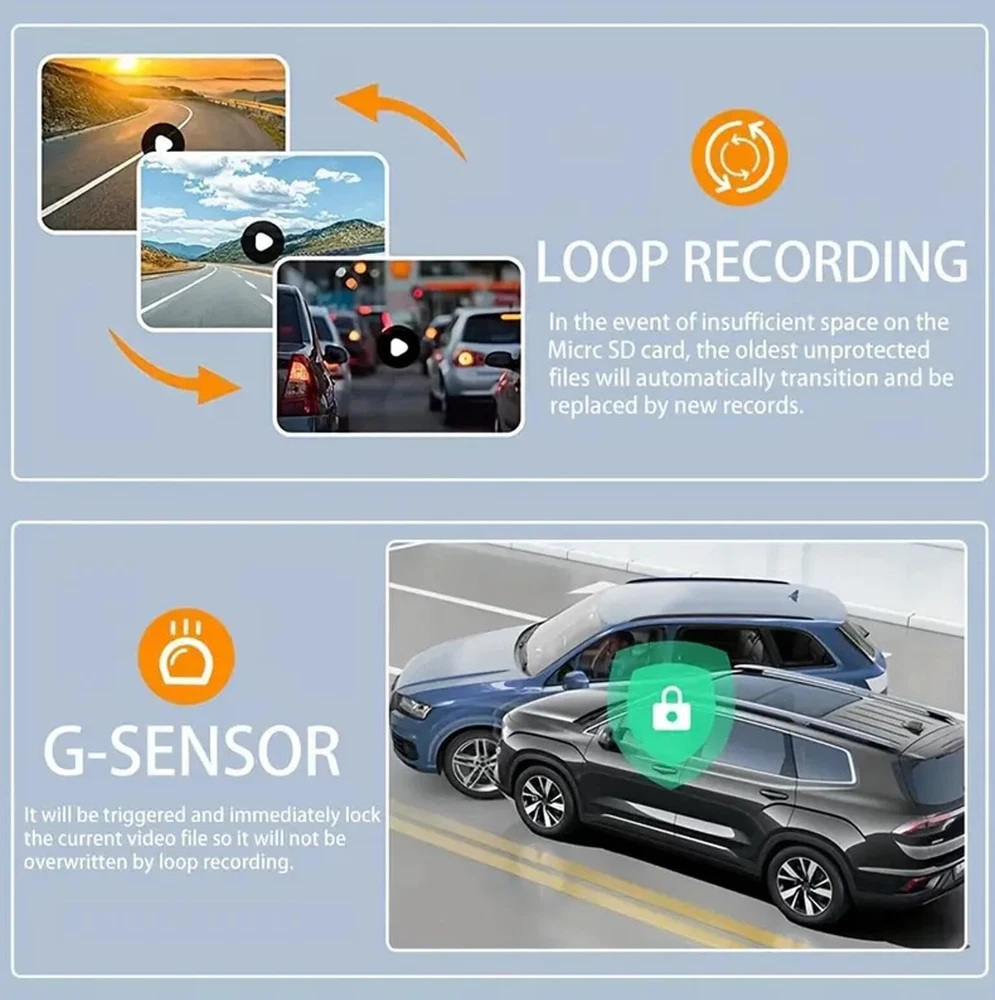 1 * Dash Cam; 1* Rear 1 * Suction cup ; 1 * 64GB TF Card 1 * Rear Cable; 1 * Power Supply Cable with Car Charger 1 * User Manual 【Car 】 The dash cam features a 2-inch large IPS display to show you real-time images. With a 1080P full HD resolution and a 170° wide-angle, the dashcam provides excellent image quality and a wider field of view. The reversing has a wide Angle lens of 140°, allowing you to reduce blind spots and capture excellent quality images. 【App Control】 Use the app to view, play, and manage dashcam in real time on your iOS and Android devices. Through the app, you can download the recorded directly to your . 【Powerful Multi-function Dashcam】The dashcams for cars features f1.8 aperture, 170° wide-angle lens, WDR, G-, parking monitoring, motion detection, loop recording, video locking and more to provide you with a safe driving experience and help you see every detail as clearly as possible when playing back. 【Quality Night Vision and WDR Technology】 The cabin cameras have an F1.8 aperture and 4 lights. In addition to producing incredibly clear recordings, its image performance will be far superior to that of other dash cams at night. 【24 Hours Parking Mode】With low bitrate recording parking mode, the dash cam will keeps recording continuously and decreases the quality of the video to maximize the recording quantity. While the motion detection or collision detection parking mode allows the to automatically initiate recording when triggered by a motion or collision event. 【Worry-After-sale 】This dash cam is easy to install and operate. If you have any questions or suggestions about the dash cam, please feel to and we will respond within 24 hours.