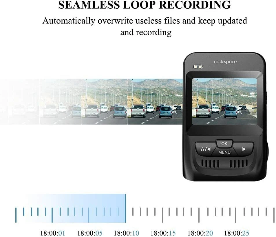 [1080p FHD Rechargeable Dash Cam & Super Night Vision] This dash cam vastly more intelligent.1080P FHD dash camera for cars high resolution with 6 layers optical glass lens, F/2. 0 aperture' dash cam video recording provide stunning clearer image and video. Dash cam has WDR + HDR function,solving the problem of light source contrast.The car camera - dash cam front combination of Sony IMX323 CMOS image sensor [Tiny Design & Ideal for Any Climate] Our dash cam 1080 Full HD video through a 150-degree lens.This dash camera for cars front will pick up more valuable information on the road . Extra dash cam wide field of view dash cam for cars and avoid blind spots. This dash camera ideal for most climates: -4 agree to 158 degree F (-20 degree to 70 degree C). It has ultra-stable working performance [Emergency SOS & G-Sensor Built] Dash camera for cars’s emergency sos could detect a serious collision when you are unresponsive. Activated by built-in gravity sensor, captures unexpected driving incidents and detect possible accident or collisions automatically save the records [Loop Recording & Long-term Memory] The car camera - dash cam front supports loop recording and the dash camera for cars will cover earlier video records when Micro SD Card is full-storage. mini dash cam supports Class 10 Micro SD Card with 8GB to 32GB capacity and please format it before use BUTTON Professional Things Are Supposed To Be Professional Rock Sapce is an excellent brand serving our customers.Brand positioning is contracted, pure and fresh, comfortable and not boringOur growing design team has an international vision, extracts the essence of different regional cultures and extends the design space infinitely. We focus on providing users with fashionable, exquisite and innovative auto accessories and other electronic products. The Most Faithful Companion During Driving No longer afraid to drive,enjoy the journey ROCK SPACE1080P FHD dash cam meet the dual needs of safety and entertainment while driving.Whether you are a novice driver or have been driving for many years. Our products are the best choice for the configuration of your car. 1080P FHD Dash Cam WDR Technology Super Night Vision Idea For Most Climates 150° Ultea-wide View G-Sensor Loop Recording Efficient 1080P FHD Dash Cam The dash cam is equipped with a high-end video processor that can record 1080p resolution video without missing frames or distortion. For you to capture the smooth outside of the car scene. Super Night Vision 1080P FHD high resolution, 6 layers optical glass lens, F/2. 0 Aperture video recording solve the problem of light source contrast, automatically make up light and improve image quality and definition. The combination of Sony IMX323 CMOS image sensor , 2. 3" LCD screen ensure you the ultimate night vision. Idea For Most Climates If you are an adventure or cross-country enthusiast. Whether in hot desert areas or in cold snow and ice areas, our products can work normally regardless of temperature. Safe 150° Ultra-wide View The 150° all-glass lens with an f/2.0 aperture provides a true wide angle so you can see more lanes in high resolution. Its 6 full-glass lenses delivers clear day and night optical capabilities with a richer, purer imaging effect. Emergency Lock G-sensor is activated by any collision to start recording emergency video to help you get evidence in the car recorder when the unexpected situation occurs. Loop Recording Travel with a recorder. Automatic loop video, limited space unlimited storage. When the memory card is full, the machine automatically deletes the earlier useless videos, so that the memory card has enough storage space to ensure that what is recorded is the current new video. Simple Sony Sensor It's 1080p/30fps resolution, offers clear images in high resolution while optimizing storage space. It captures fast-moving scenes, records intense moments, and accurately provides emergency recordings using a built-in gravity sensor. No Crash Wide dynamic hardware technology, in the process of image synthesis WDR+HDR has excellent performance of the hardware algorithm, to create faster, more accurate clear image. Campact And Dualble This car camera is small and lightweight but compact and solid.It is resistant to wear and light, with a metallic texture and color. Even after a long period of practical,the appearance and shape will not change. Easy To Set Up Easily and securely mount to your windshield or dashboard in seconds with the included double-sided 3M pad and cable clip.