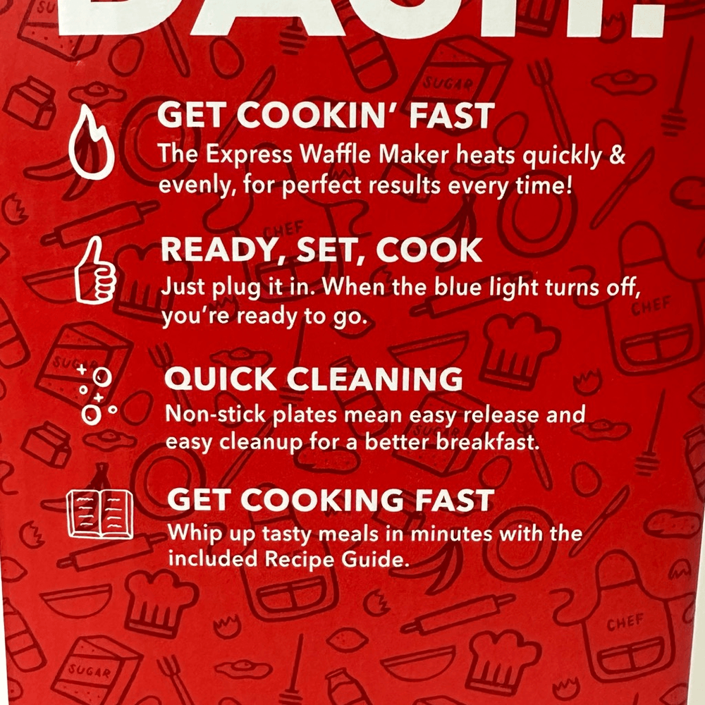 Waffle maker heats quickly and evenly. It is non-stick. Cooks at 1000 watts. Easy cleanup. Includes recipes. Make waffles, Chaffles, Falafels. New, unopened. Still in the box. 8” cooking surface Non-stick Round waffles #1529 Breakfast, cook, food, lunch, brunch