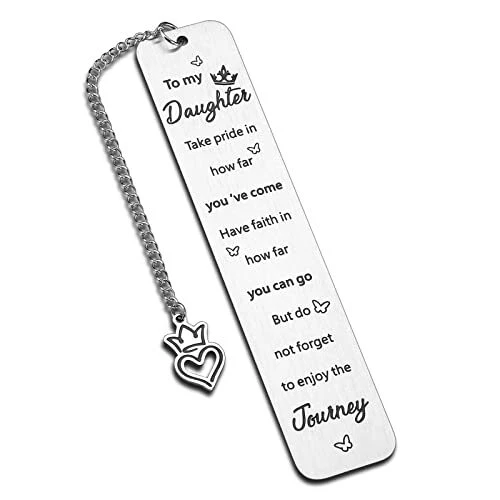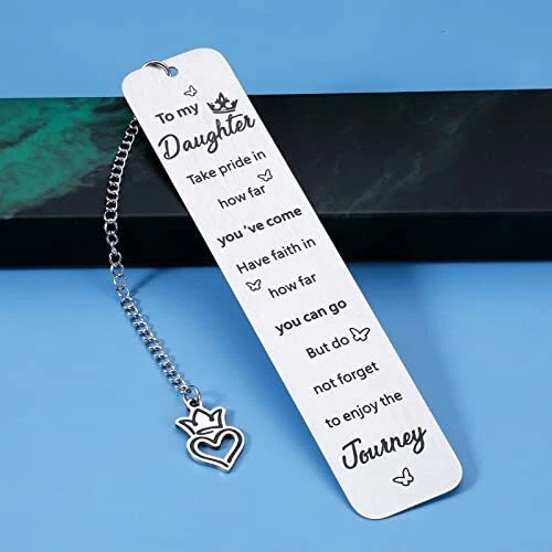 Return Policy Fast Delivery Trusted seller Daughter Gift from Mom Inspirational Bookmark Stocking Stuffers for Teen Girls Daughter in Law Gifts Christmas Gifts for Daughter Birthday Valentines Day Graduation Gifts for Her Teen Girls Gift Ideas Product Description ♛Daughter Gift from Mom--The well-made inspirational bookmark, engraved with “To my daughter, Take pride in how har you’ve come. Have faith in how far you can go. But do not forget to enjoy the journey” is perfect for your daughter, daughter in law, bonus daughter, stepdaughter, teen girls, teenager girls. Best Christmas gift ideas for your daughter’s birthday, school graduation, college grad, Christmas, Valentine’s Day, and other special occasions. ♛Teen Girls Gift Ideas--Special daughter gifts for the special day and make her know how much you love her. Best teen girls gifts ideas to express your carefulness and love when your daughter is reading. Gifts for teen girls, stuff for teen girls, daughter in law gifts from mother in law, bonus daughter gifts, birthday gifts for daughter, graduation gifts for daughter, Valentine’s Day gifts for daughter, Christmas gifts for daughter. ♛Stocking Stuffers for Teen Girls--Would you like to give your dear daughter an unexpected Christmas surprise? This book mark is the best gift idea as Christmas stocking stuffers for your kids. Gifts for daughters from mothers, stocking stuffers from mom, girls stocking stuffers, daughter Christmas gifts, Mother’s Day gifts for daughter. Christmas presents for teen girls, Christmas gifts for teen girls. ♛Daughter in Law Gifts--Family isn’t always blood. It's the people in your life who want you in theirs, the ones who accept you for who you are. Perfect daughter in law gift ideas, daughter-in-law gifts for Christmas, bonus daughter gifts, stepdaughter gifts from stepmom, stepdaughter gifts from stepdad. It is a wonderful gift for your daughter to thank for her to come up in your life, and enjoy the happiness together. ♛Material & Package: Size: 130*26*0.5 mm/ 5.12*1.02*0.02 in. The inspirational TO MY DAUGHTER bookmark with cute pedant, made of stainless steel, has a good quality weight and feel, sturdy and giftable. Very polished and edges are smooth. Packaged with an attractive jewelry box, it meets the gift-giving needs and a great addition to an inspirational gifts basket. You'll get our 24 h service if any suggestions or questions. Shipping Returns Payment Shipping Shipping is FREE to all addresses other than APO/PO boxes in the lower 48 states. All our stock ships from US-based warehouses. Shipped via USPS or UPS (depending on location and package weight) Unless stated otherwise, all orders will ship within 24-72 hours of your payment being processed. Check our feedback to see the great reviews of FAST shipping we offer. Returns Seller does not accept returns Payment We currently accept payment via eBay managed payments only. Once payment is cleared, we will dispatch your shipment within 1-3 business days. Please refer to the "Shipping" tab for more information regarding shipping speed to your destination.