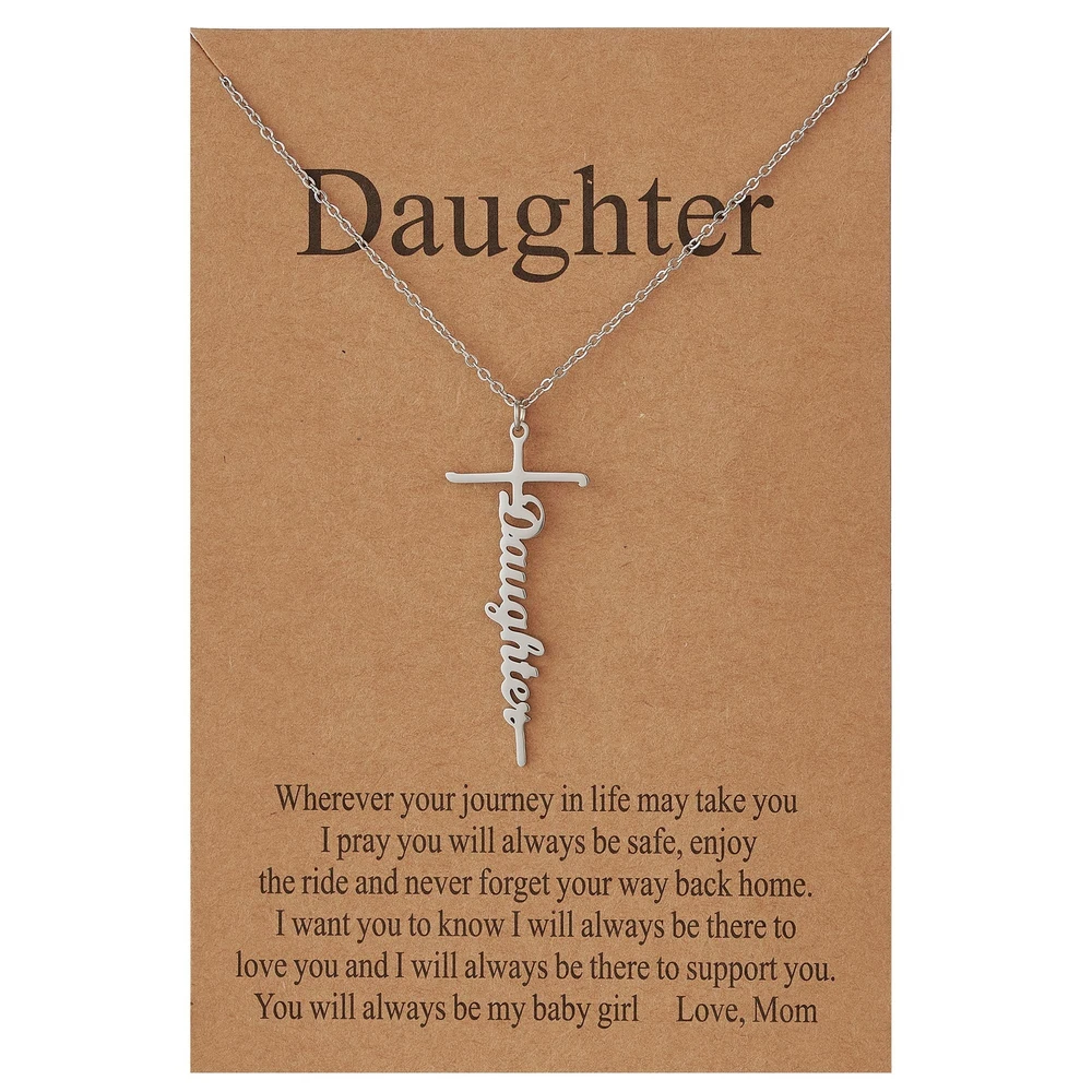 Being a people of God is the noble mission that Christians should yearn for. "Daughter" is written inside the beautiful cross. Perfect gift choice:Thoughtful jewelry gift for your daughter,granddaughter on Birthday, Christmas, Graduation or just send as a best friend gifts for women that special in your life. With Inspirational Reminder Message Card:"Wherever your journey in life may take you I pray you will always be safe, enjoy the ride and never forget your way back home. I want you to know I will always be there to love you and I will always be there to support you. You will always be my Love, Mom" The Chain Length is 18 inches+2 inches Extender. Adjustable Necklace Suitable for Most People. Material: Stainless steel lead-free nickel-free hypoallergenic, no rust, no color loss, no discoloration. If You Have Any Question Please Us